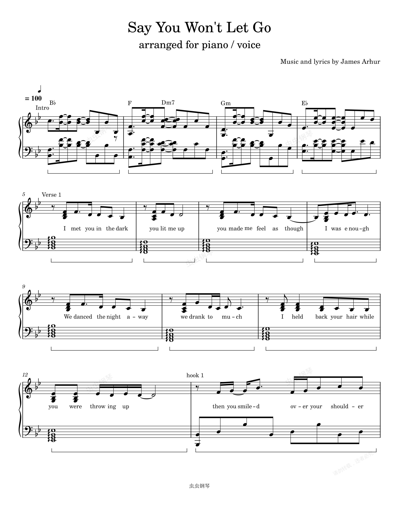 钢琴谱:Say You Won't Let Go-James Arthur