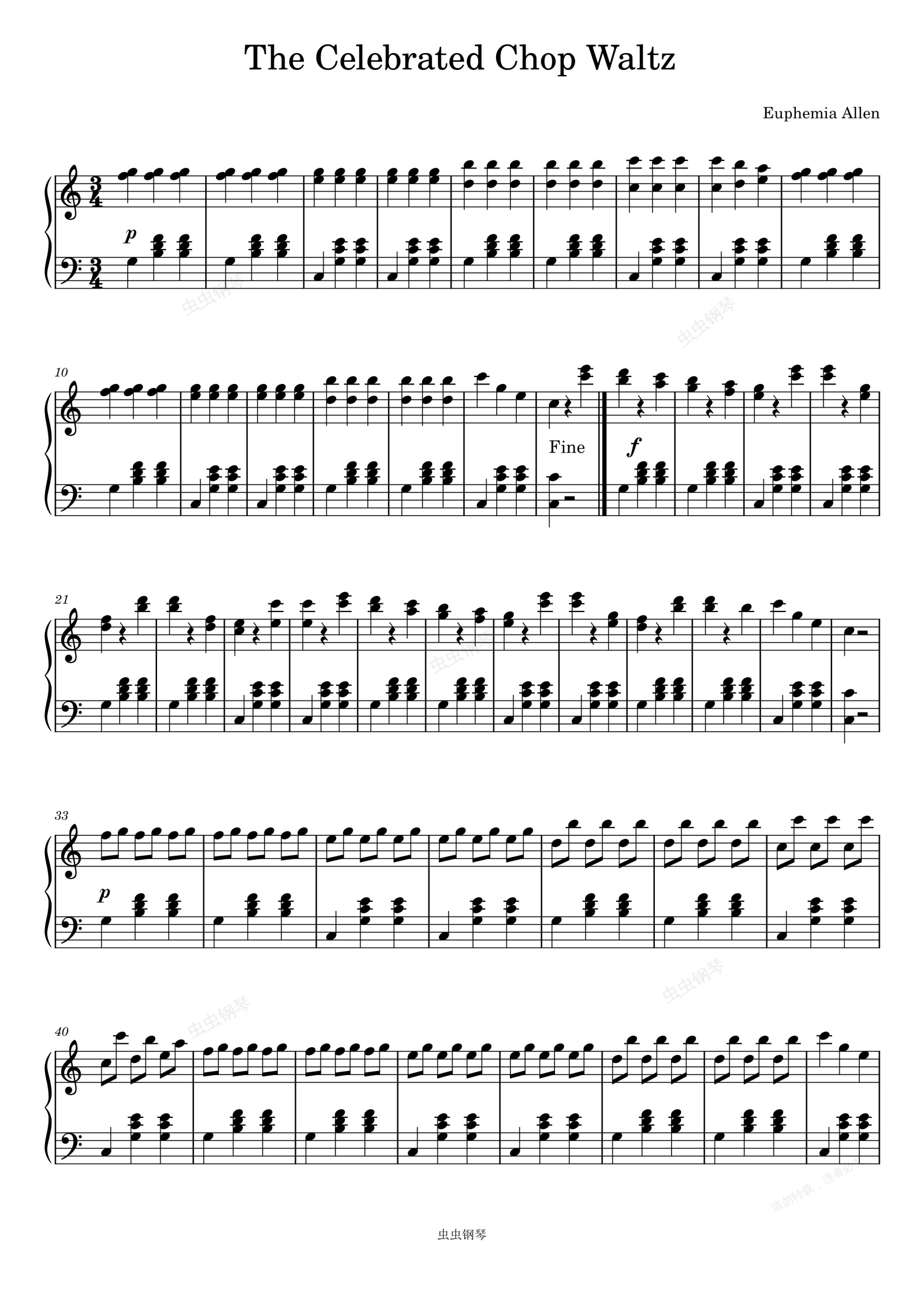 钢琴谱:The Celebrated Chop Waltz-Euphemia Allen