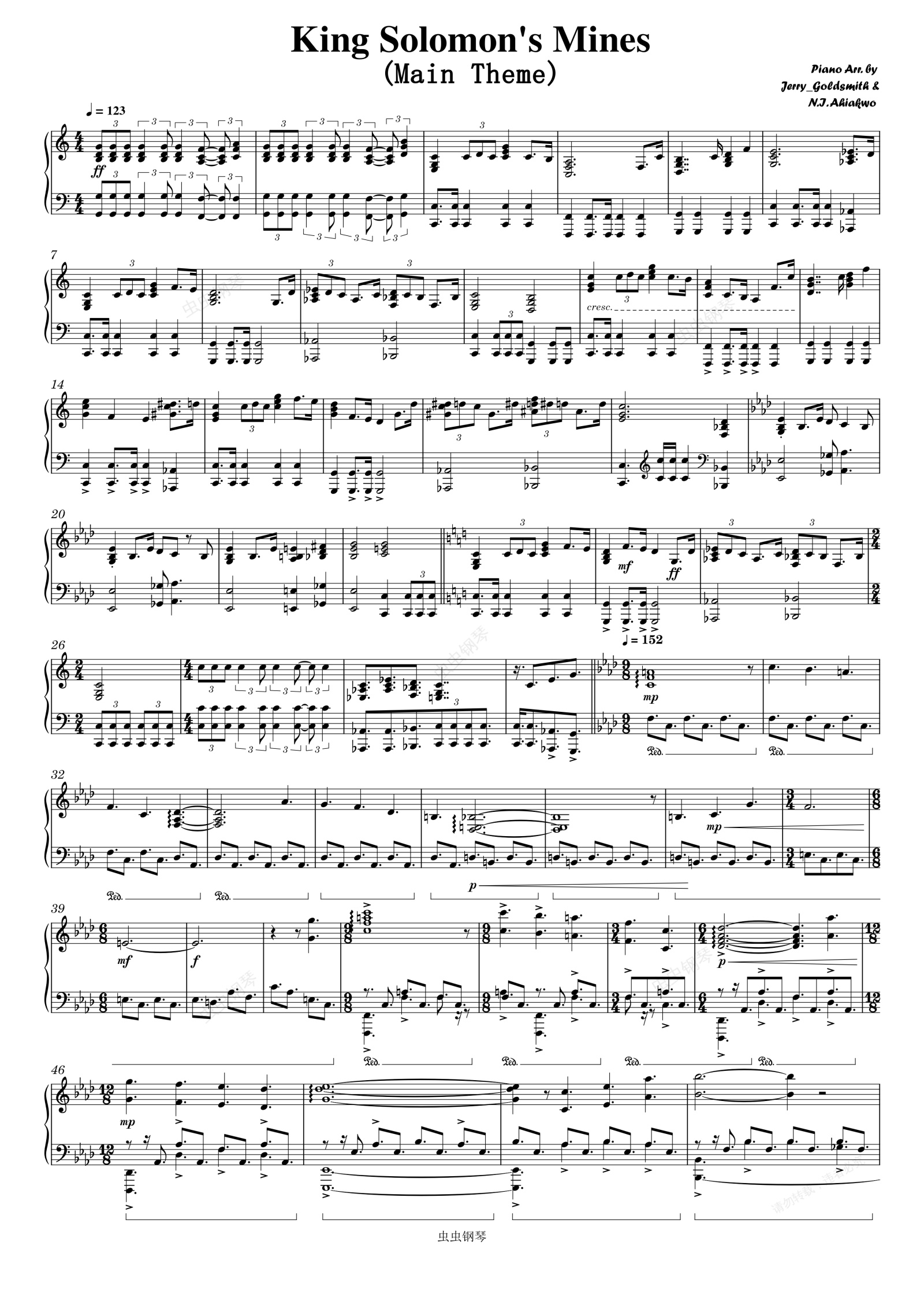钢琴谱:所罗门宝藏 King Solomon's Mines