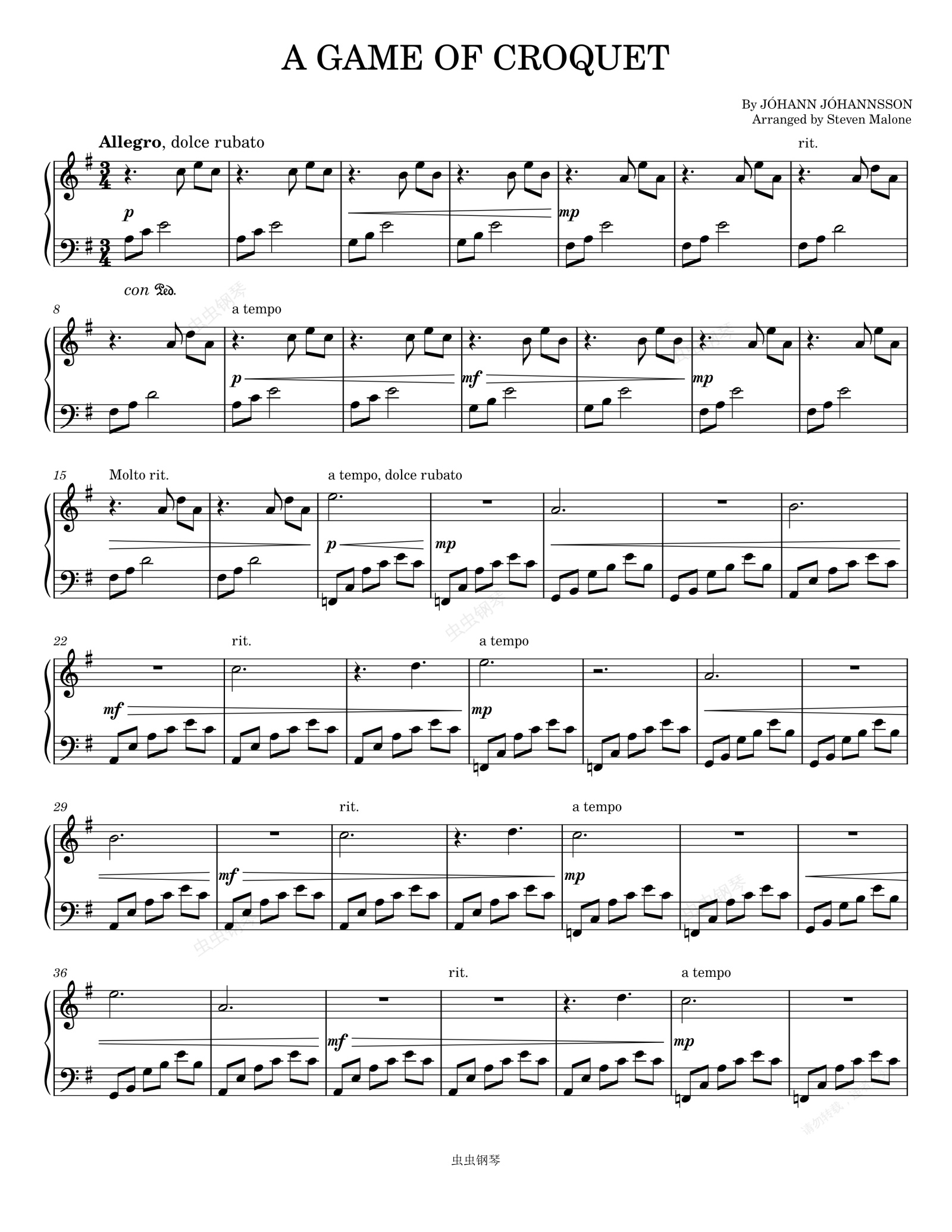 钢琴谱:万物理论 电影- A Game of Croquet-Jóhann Jóhannsson