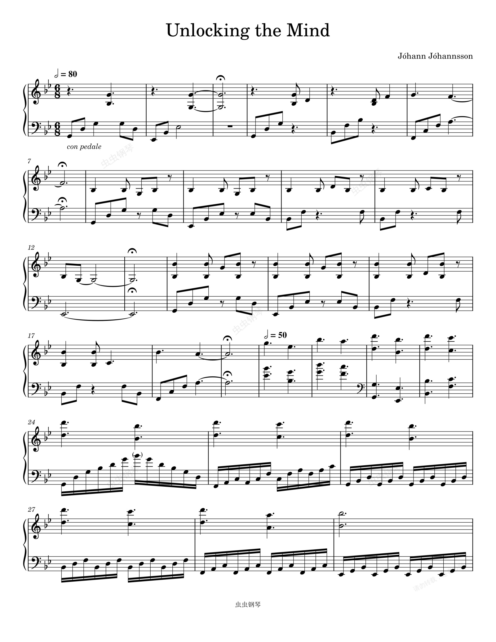 钢琴谱:Unlocking the Mind-Jóhann Jóhannsson