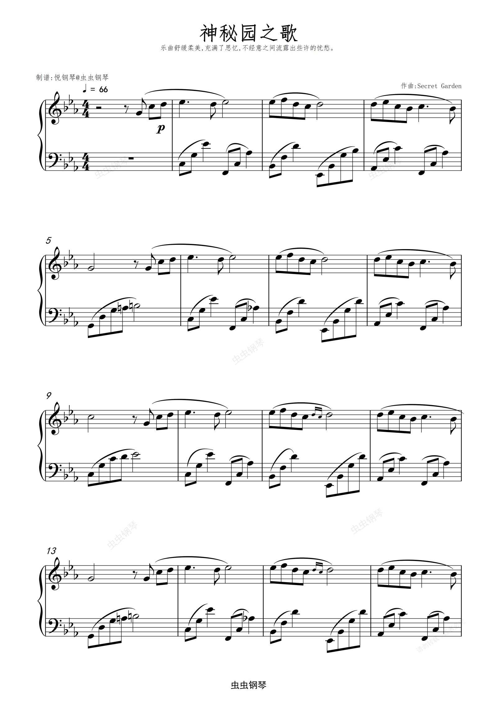 钢琴谱:神秘园之歌-Songs From A Secret Garden