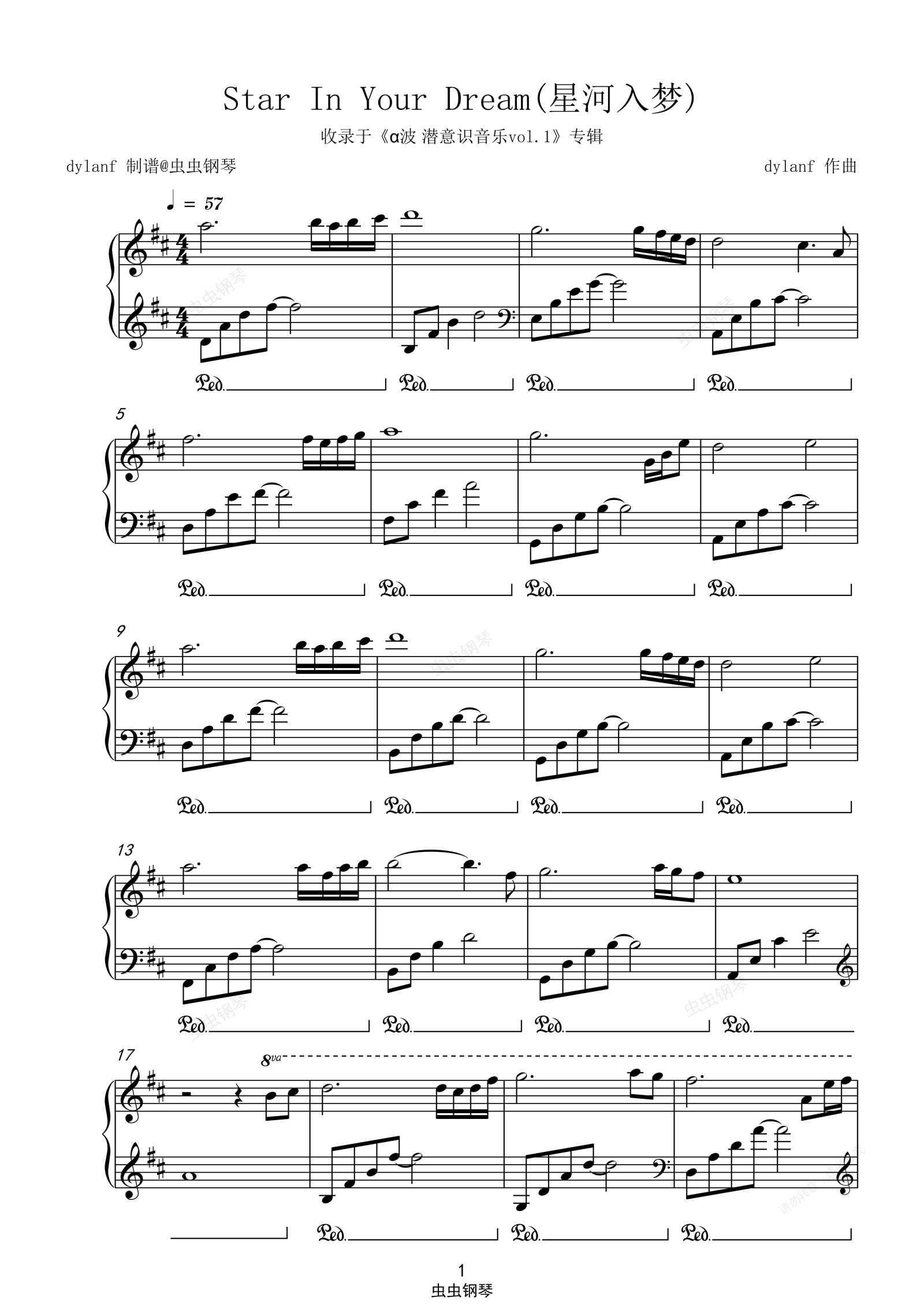 钢琴谱:Star in your dream(星河入梦)α波 潜意识音乐 dylanf 星光钢琴曲