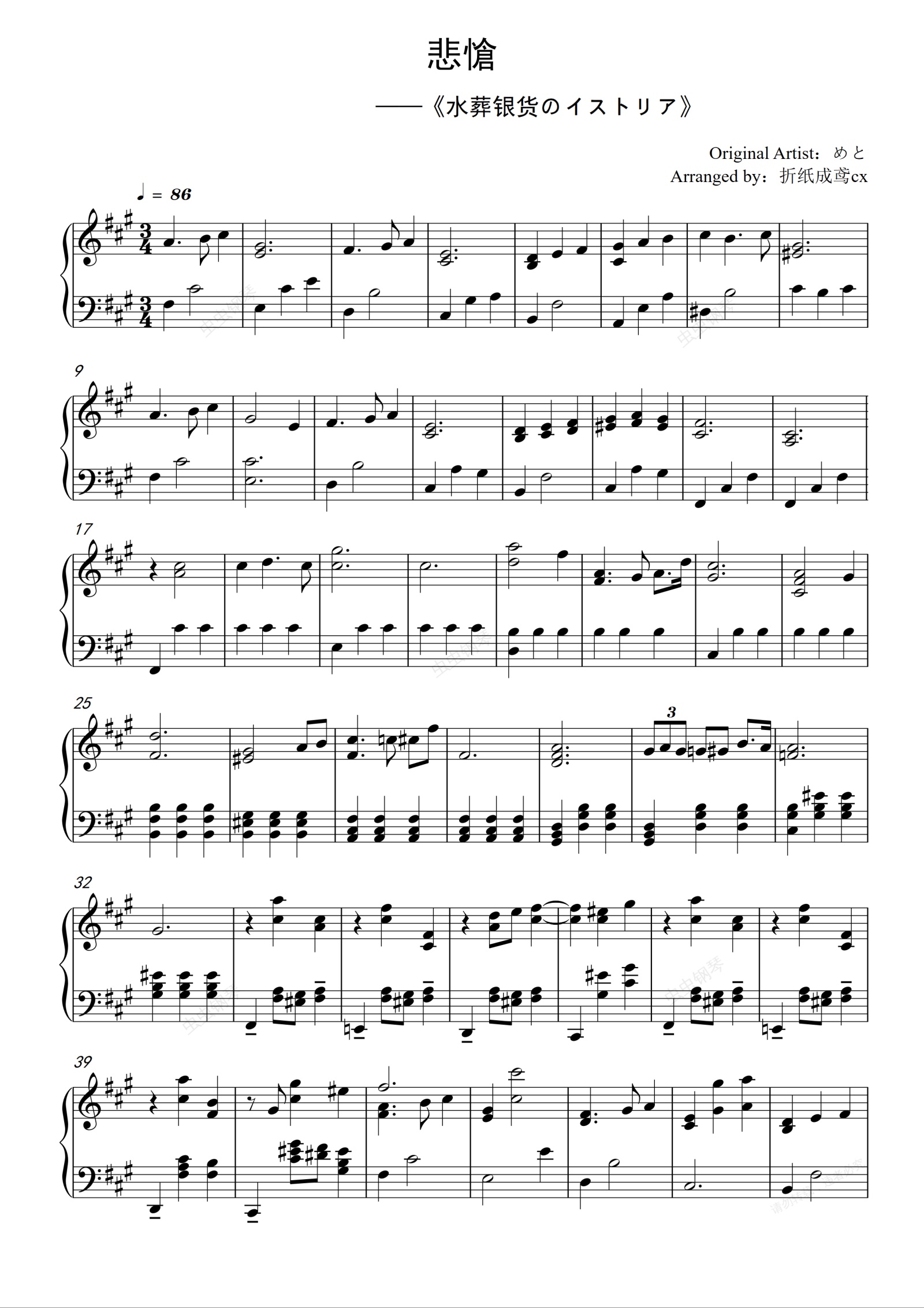 您的位置: 首页 > 钢琴谱库 > 悲愴钢琴谱-めと-水葬银货的Istria