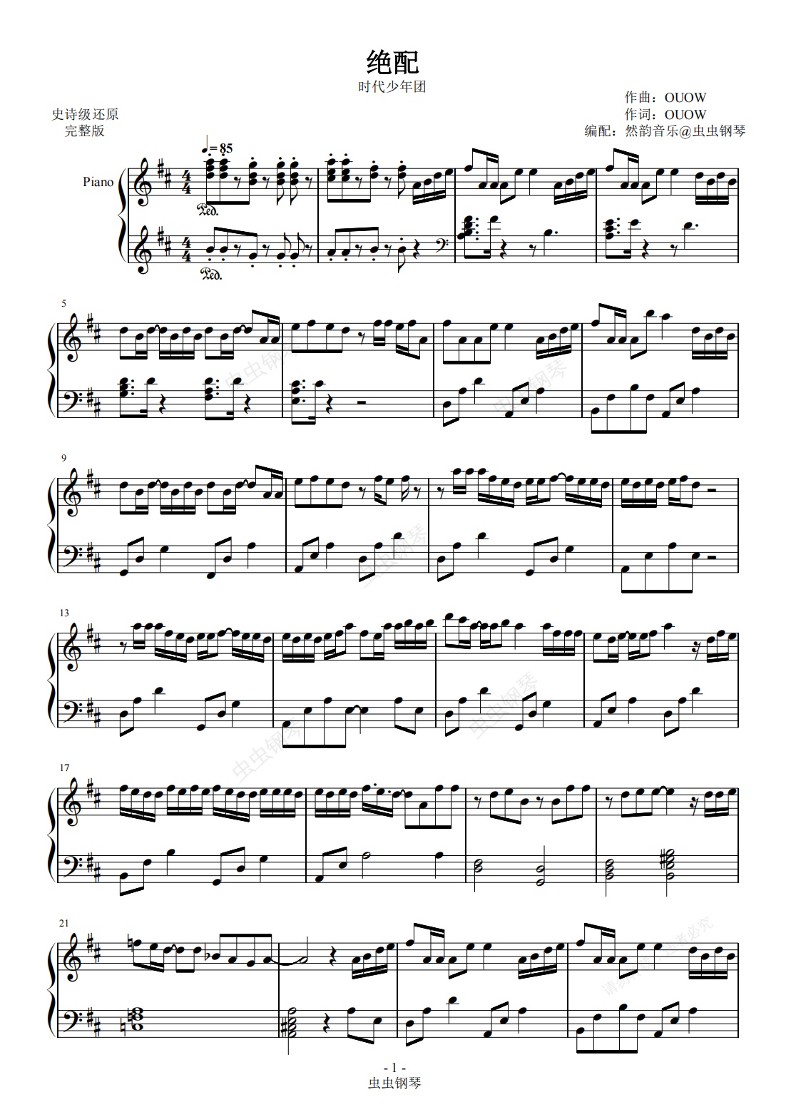 钢琴谱:【原调】绝配-TNT时代少年团 史诗级还原 然韵音乐编配