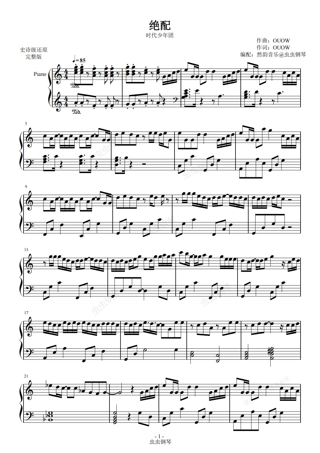 钢琴谱:【C调】绝配-TNT时代少年团 史诗级还原 然韵音乐