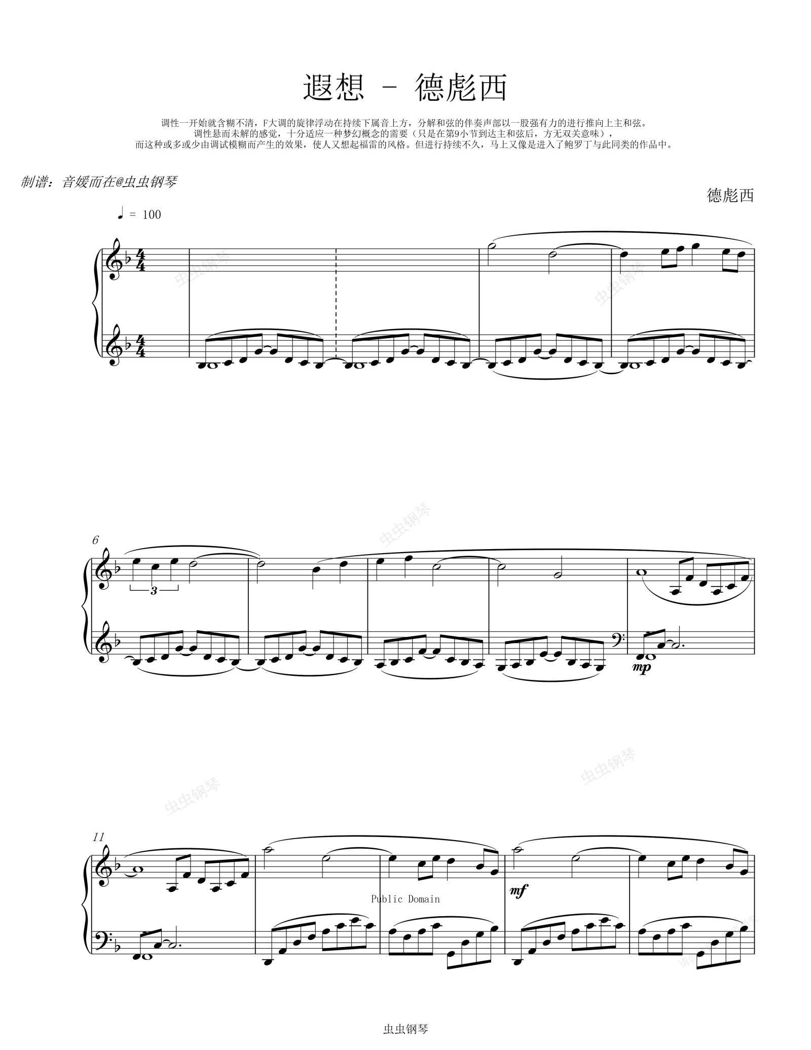 钢琴谱:遐想 - 德彪西 【美得让人窒息的旋律】