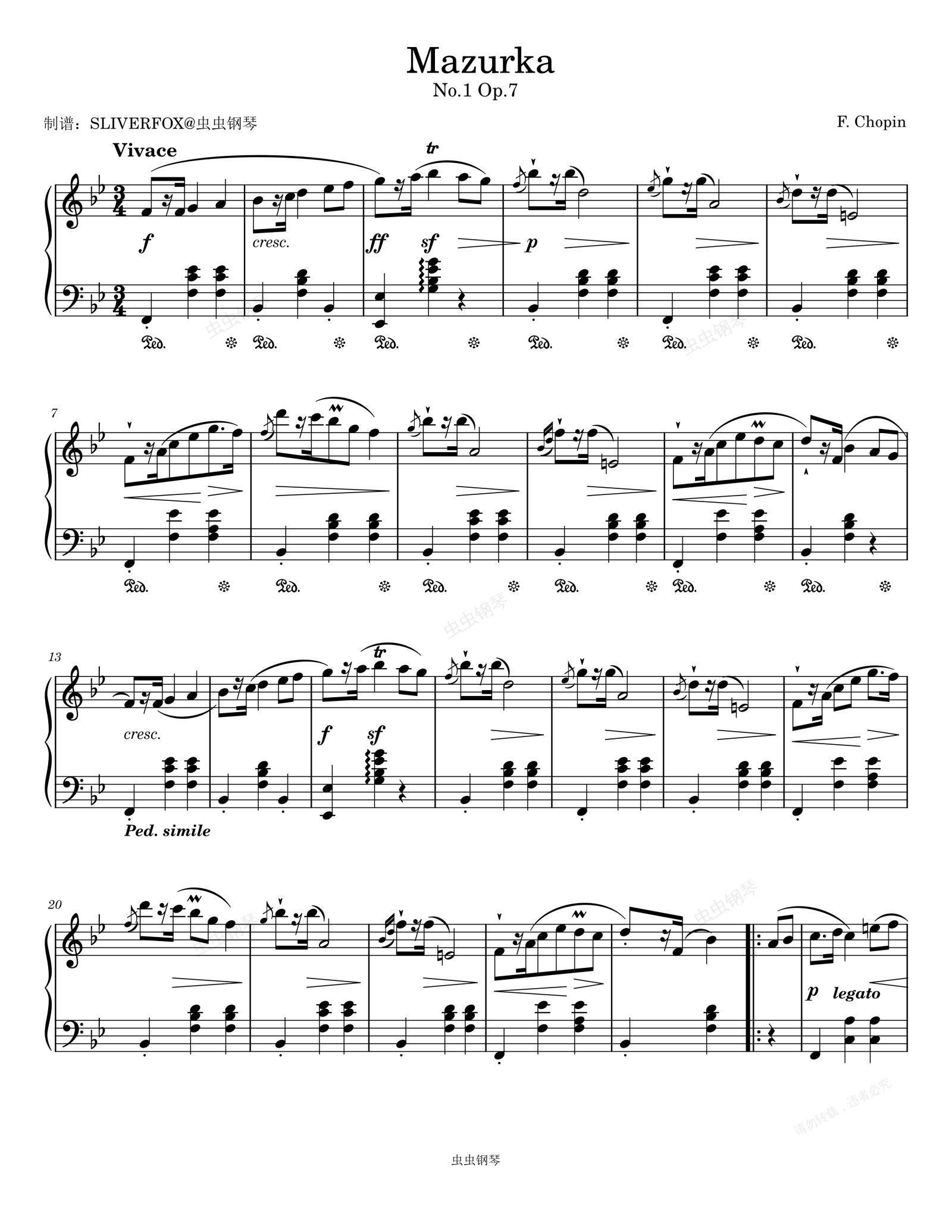 钢琴谱:《玛祖卡》肖邦No.1 Op.7