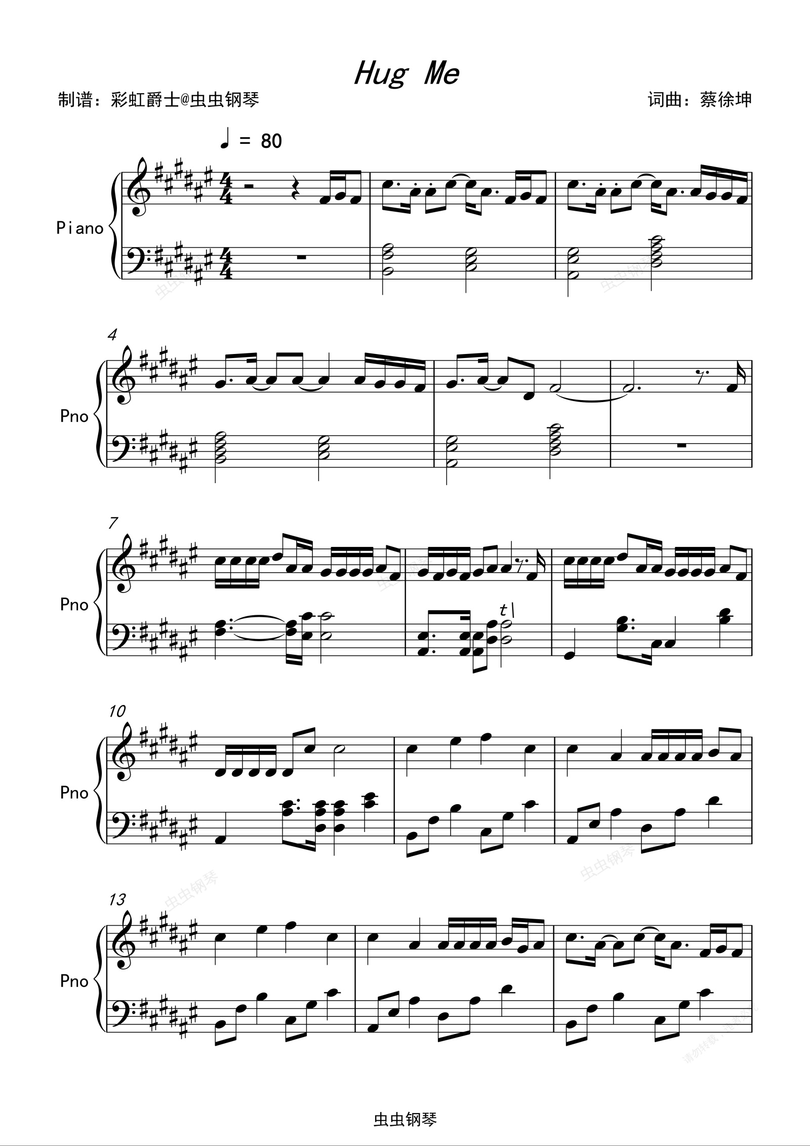 钢琴谱:Hug Me 蔡徐坤 完整版