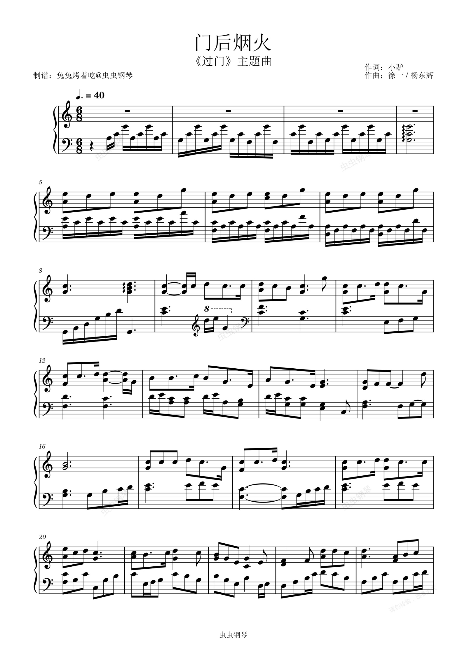 钢琴谱:《门后烟火》 过门主题曲