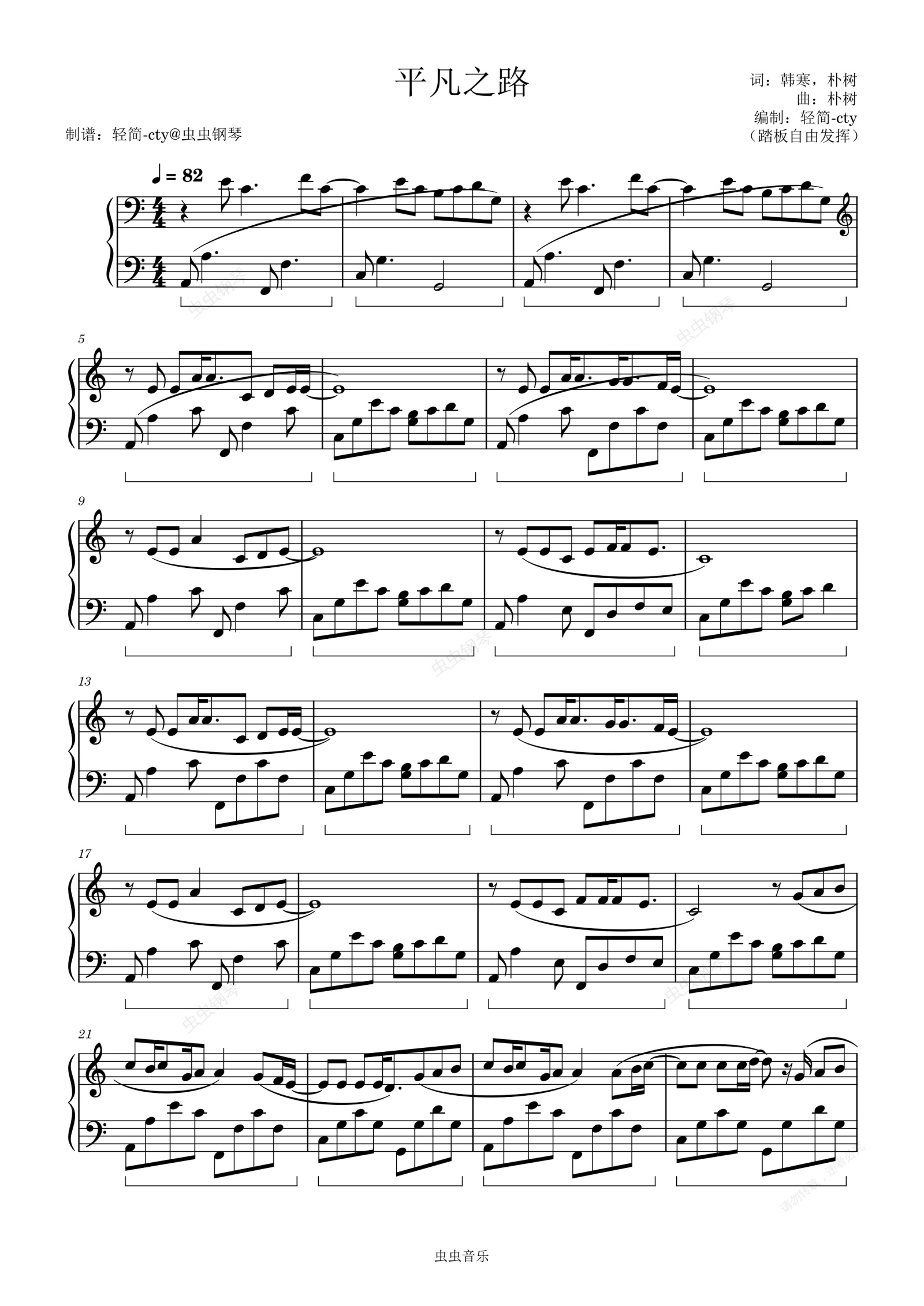 钢琴谱:平凡之路 轻简还原版
