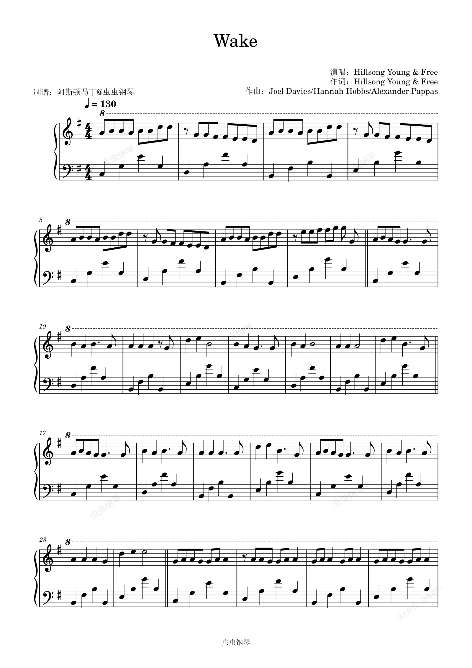 钢琴谱:Wake (Live) - Hillsong Young & Free (新頌青年&自由)