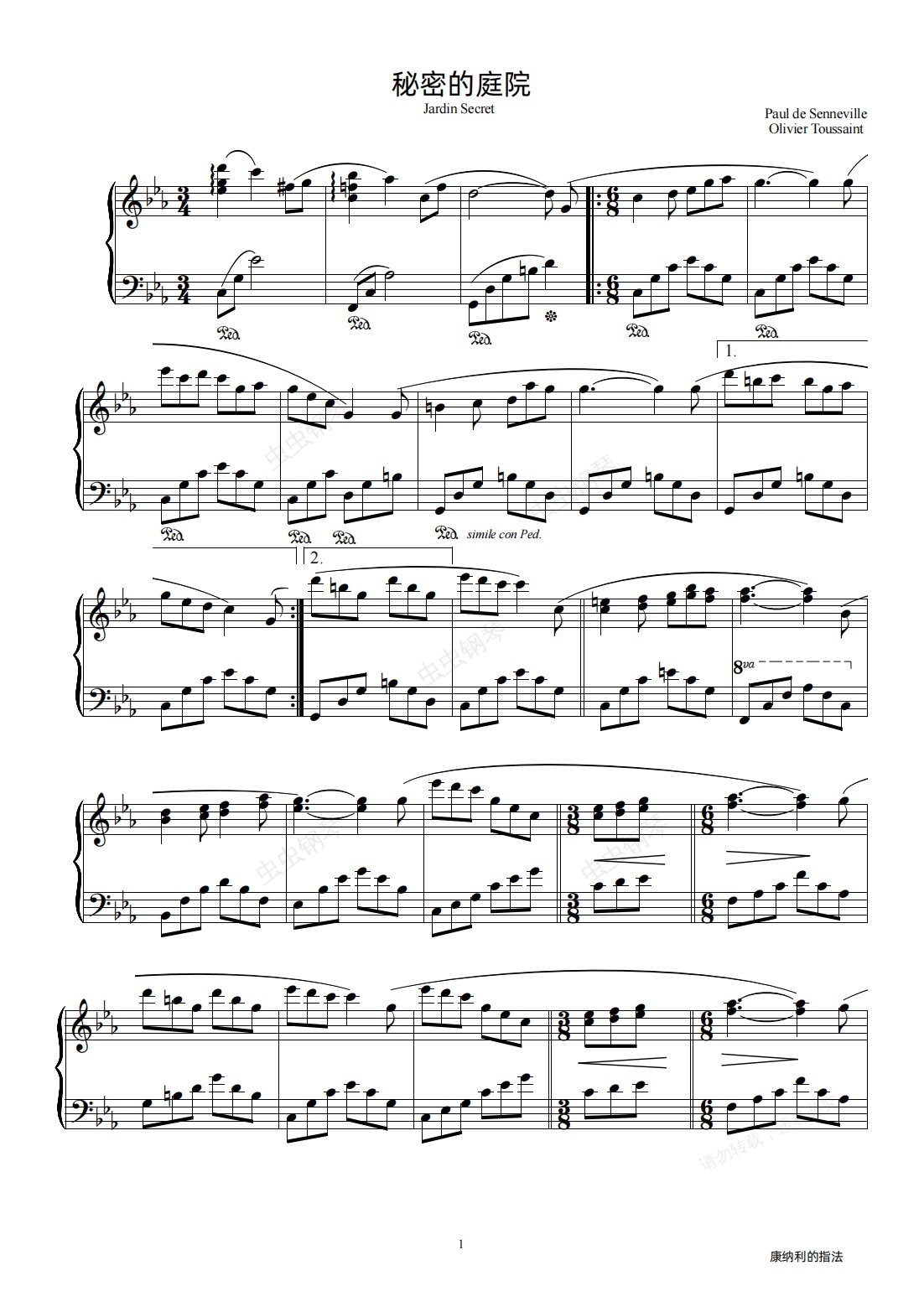 钢琴谱:秘密的庭院 Jardin Secret