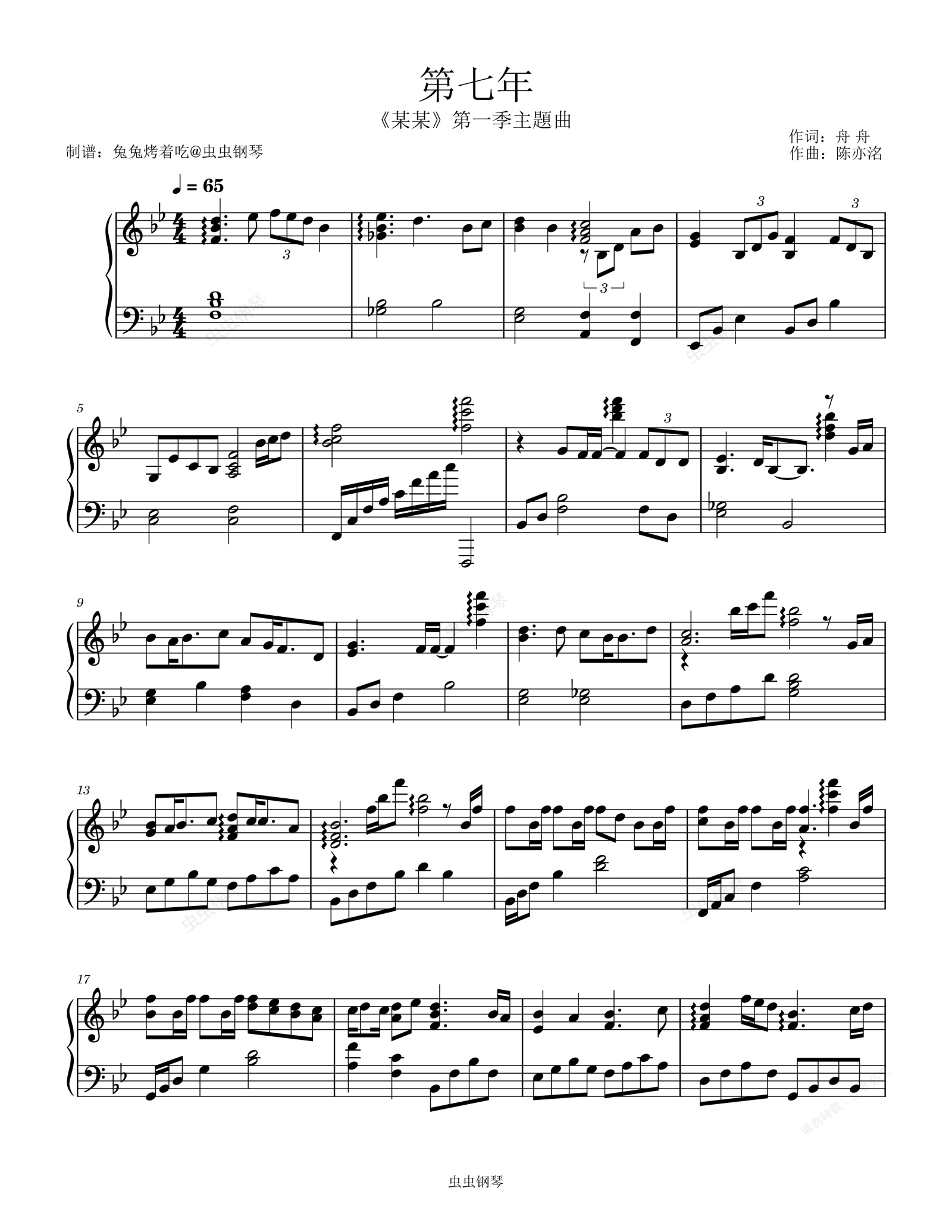钢琴谱:《第七年》广播剧 某某第一季主題曲独奏版