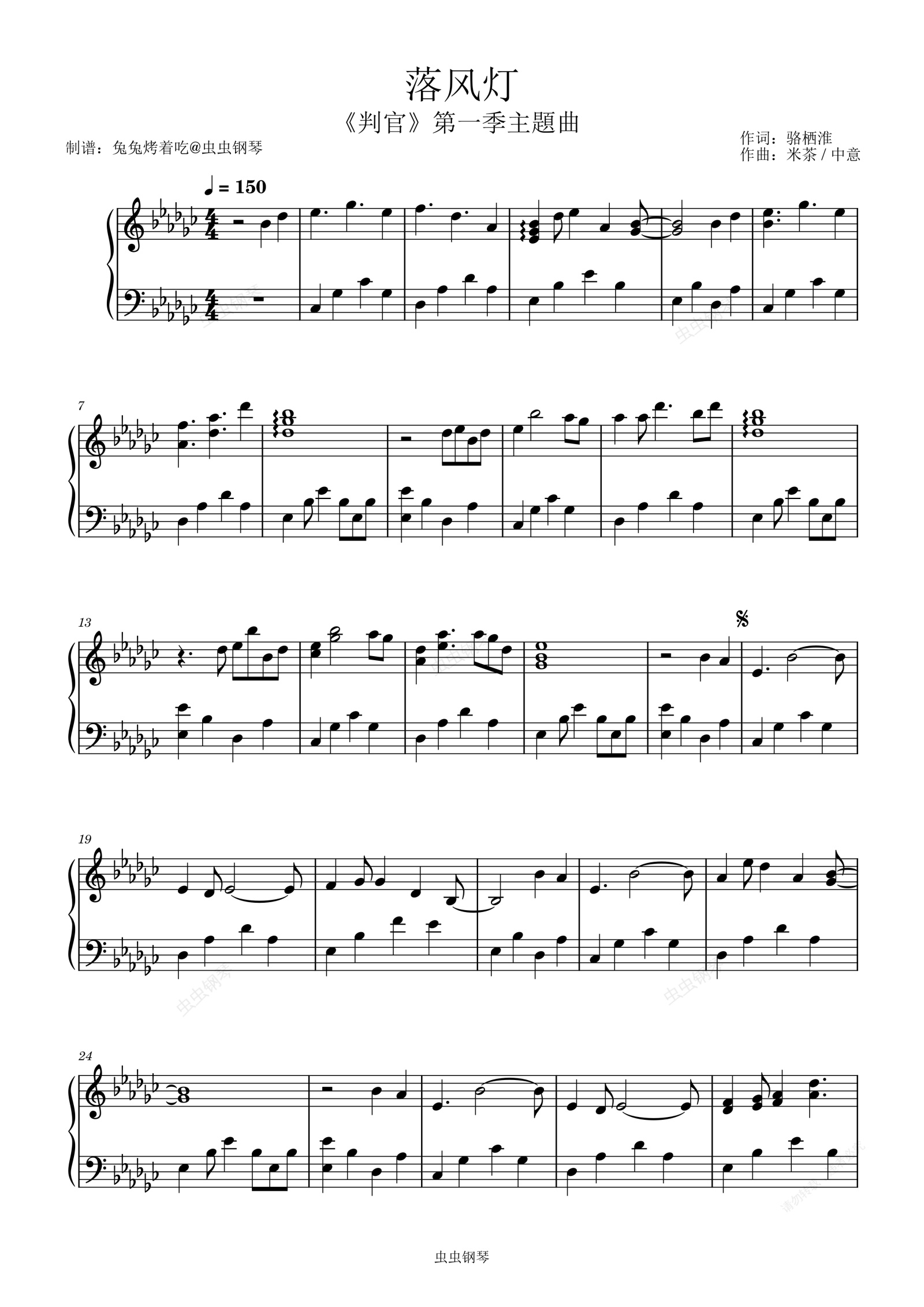 钢琴谱:《落风灯》 判官第一季主題曲 独奏版