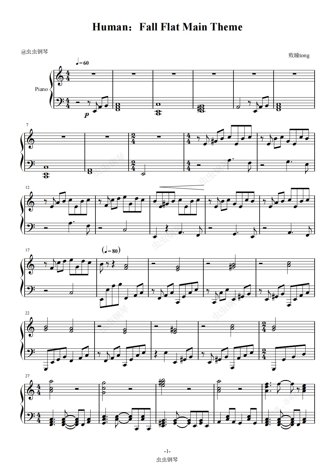 钢琴谱:人类一败涂地 游戏 Human:Fall Flat Main Theme