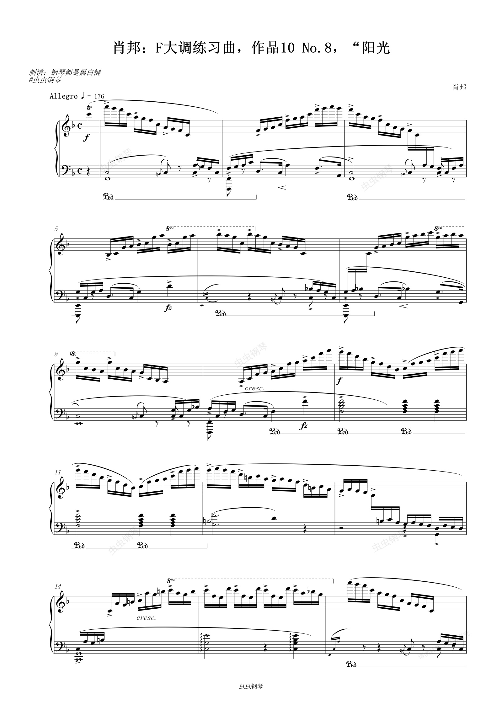 钢琴谱:肖邦:F大调练习曲,作品10 No.8,“阳光
