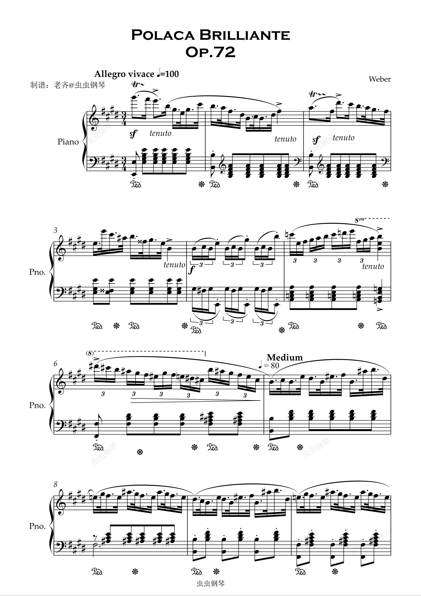 钢琴谱:韦伯 辉煌波罗乃兹 Weber Polacca Brilliante, Op 72