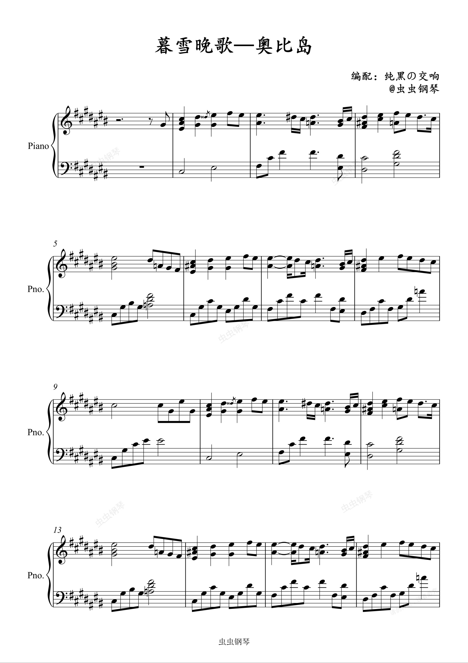 钢琴谱:暮雪晚歌(版本1)—《奥比岛》