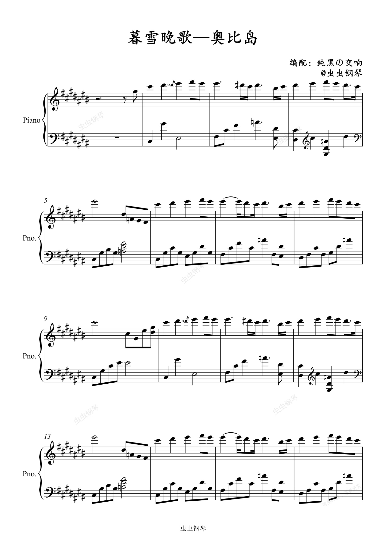 钢琴谱:暮雪晚歌(版本2)—《奥比岛》