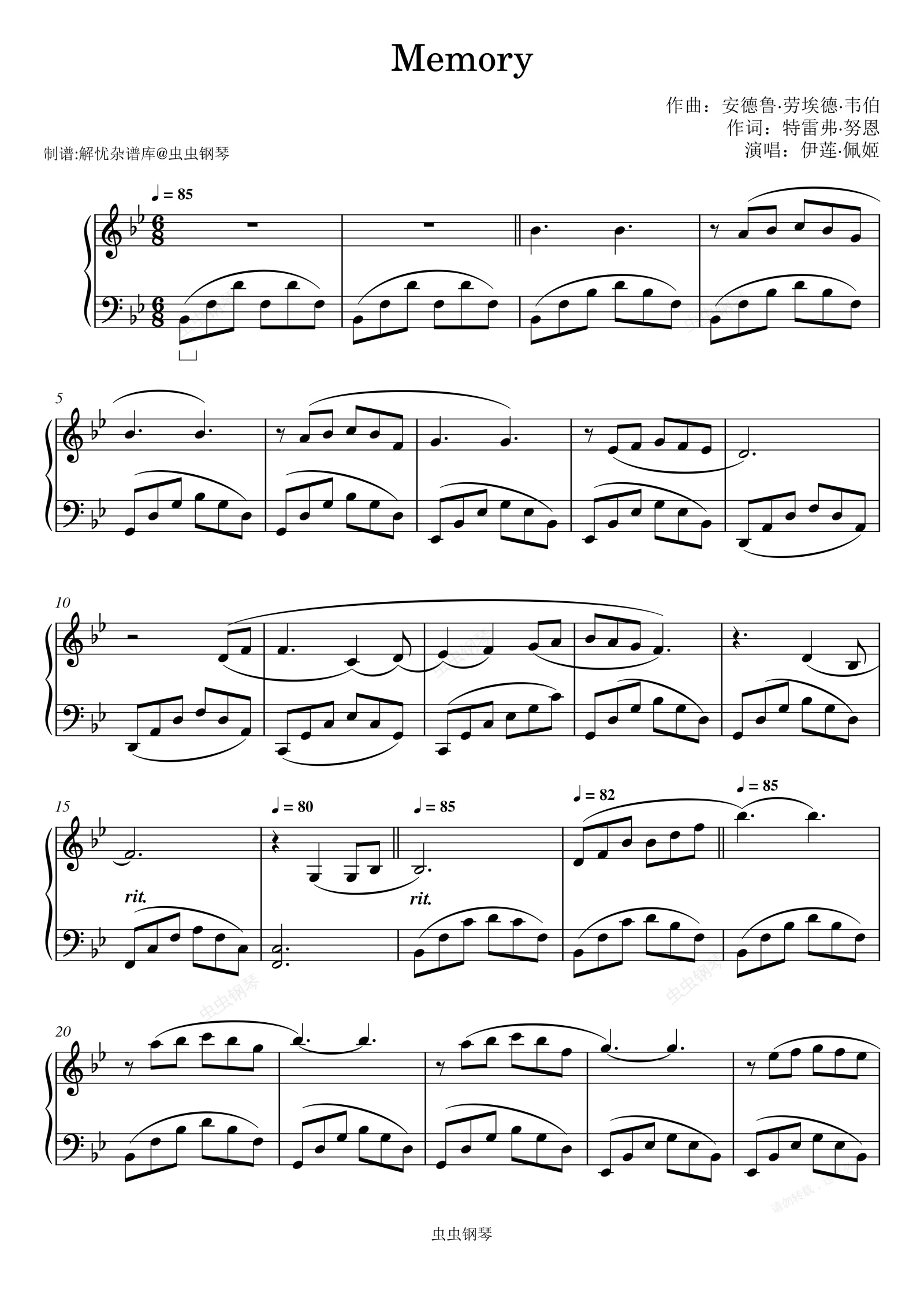 钢琴谱:Memory (Cats)
