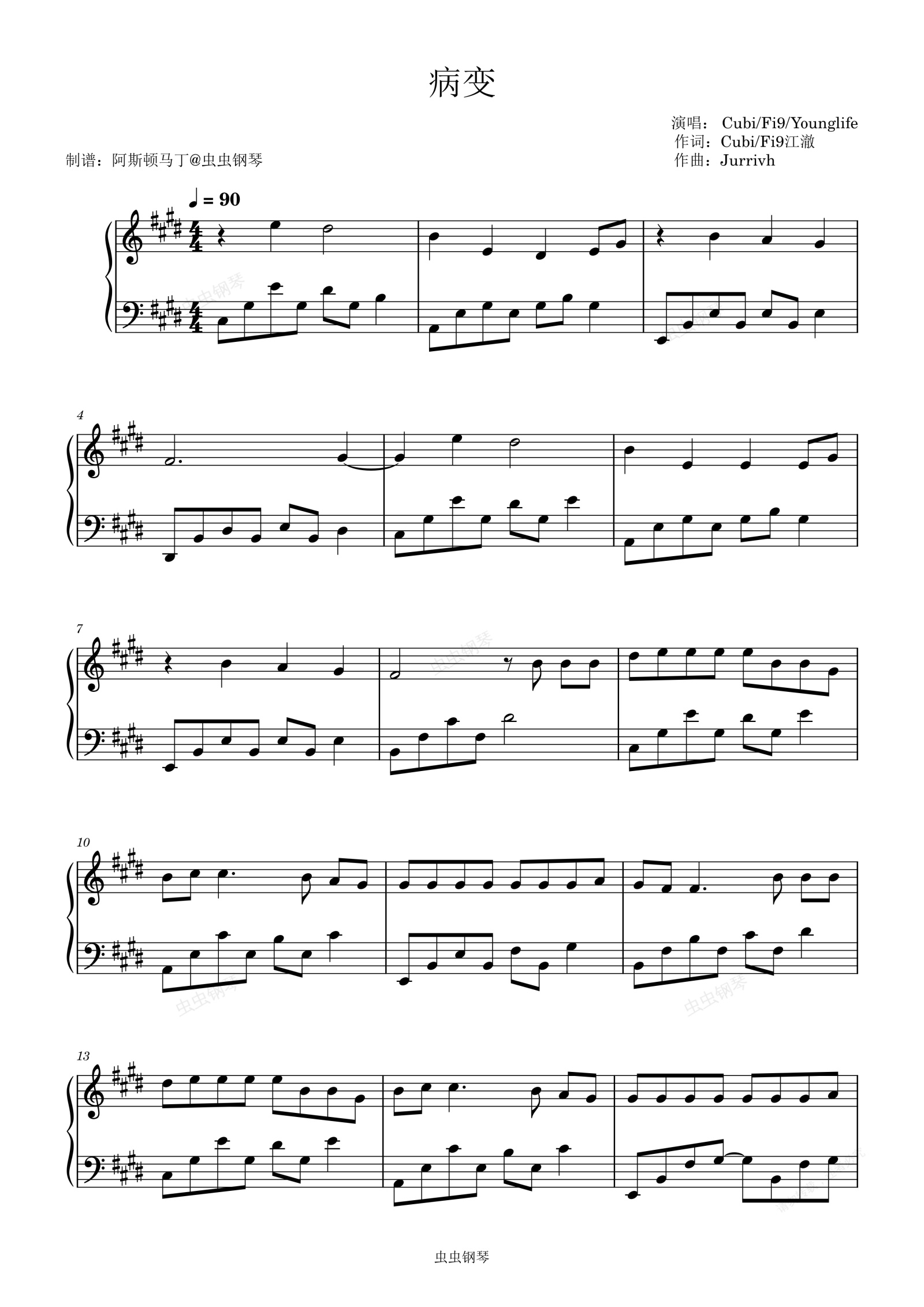 钢琴谱:BINGBIAN病变 - Cubi/Fi9/Younglife