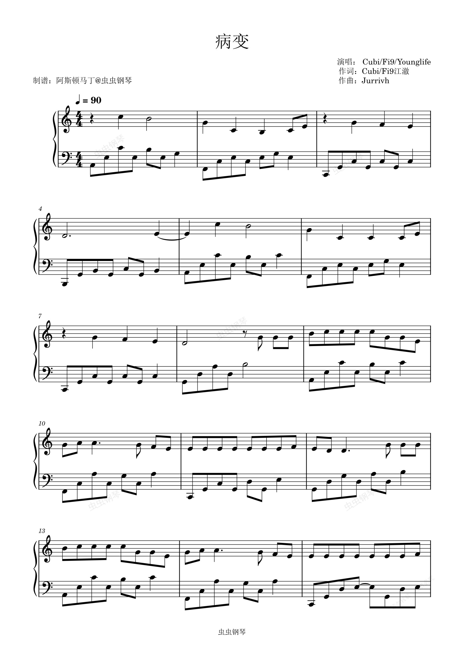 钢琴谱:BINGBIAN病变 - Cubi/Fi9/Younglife