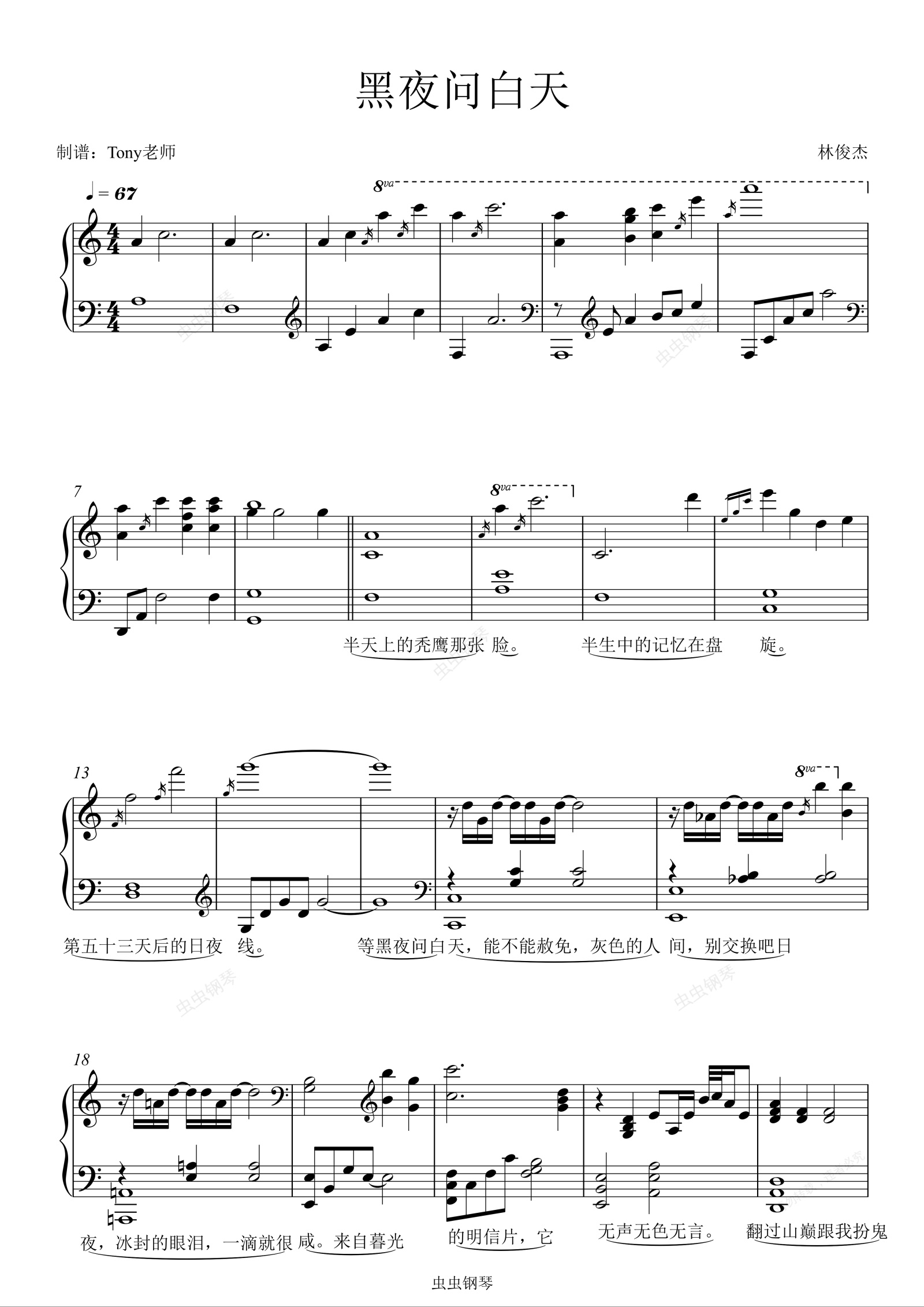 钢琴谱:黑夜问白天【完美伴奏附词】林俊杰