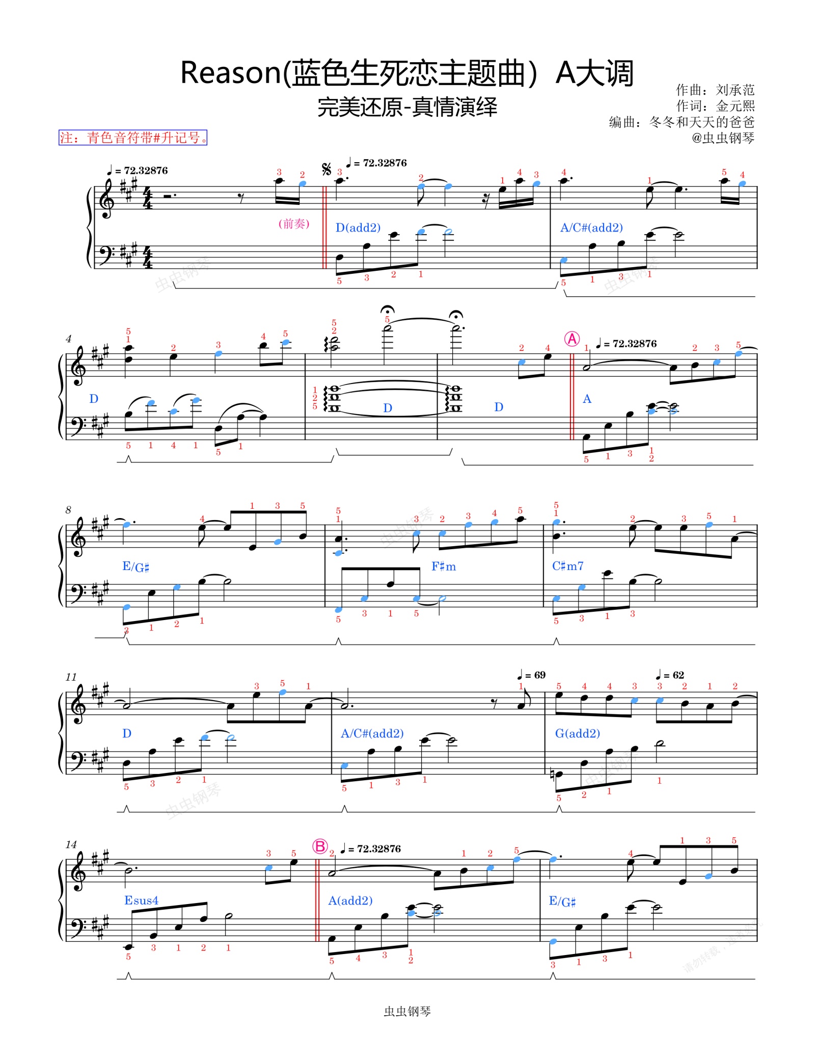 钢琴谱:Reason(蓝色生死恋主题曲)【完美还原】【真情演绎】