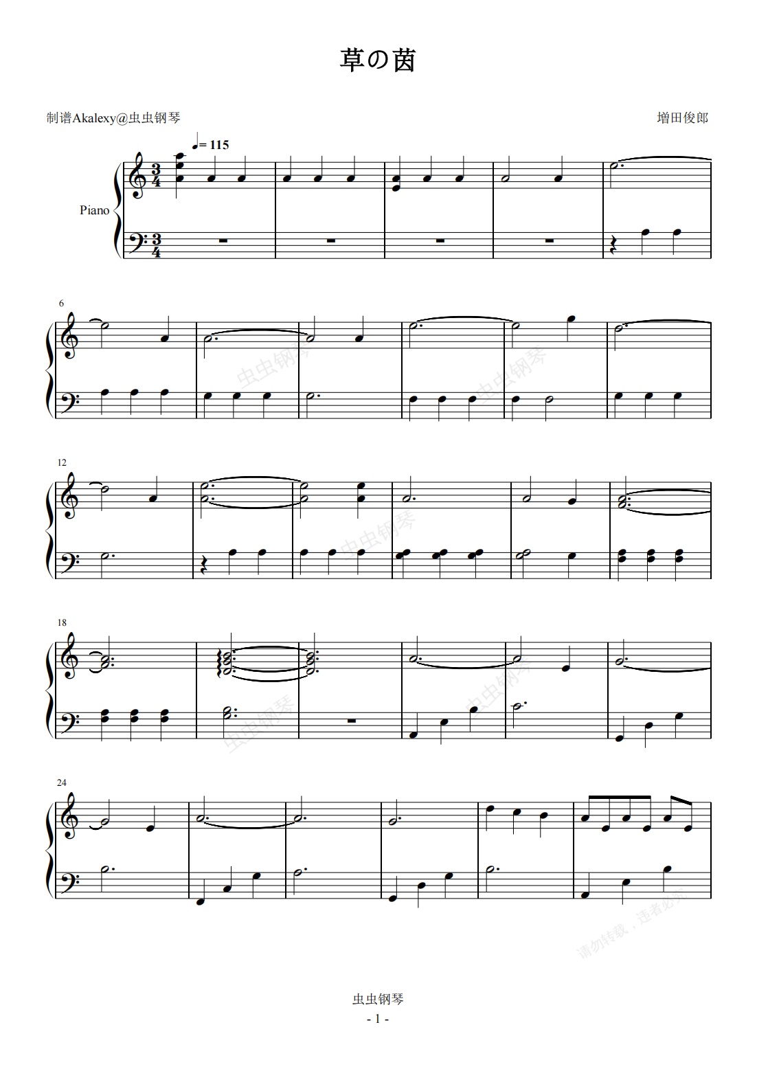 钢琴谱:虫师《草の茵》