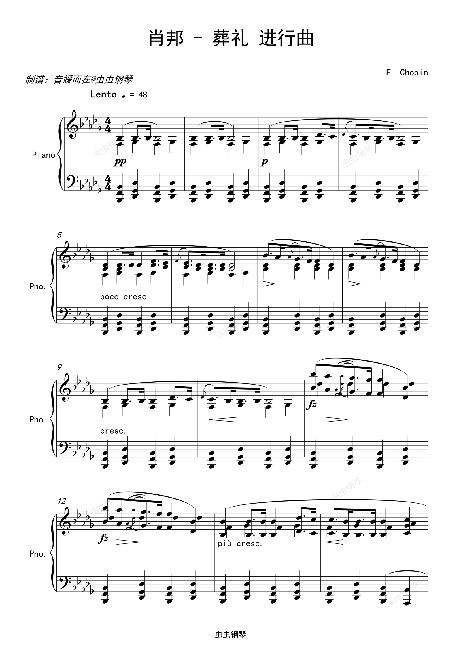 钢琴谱:葬礼进行曲 (肖邦版)《降b小调第二钢琴奏鸣曲》的第三章