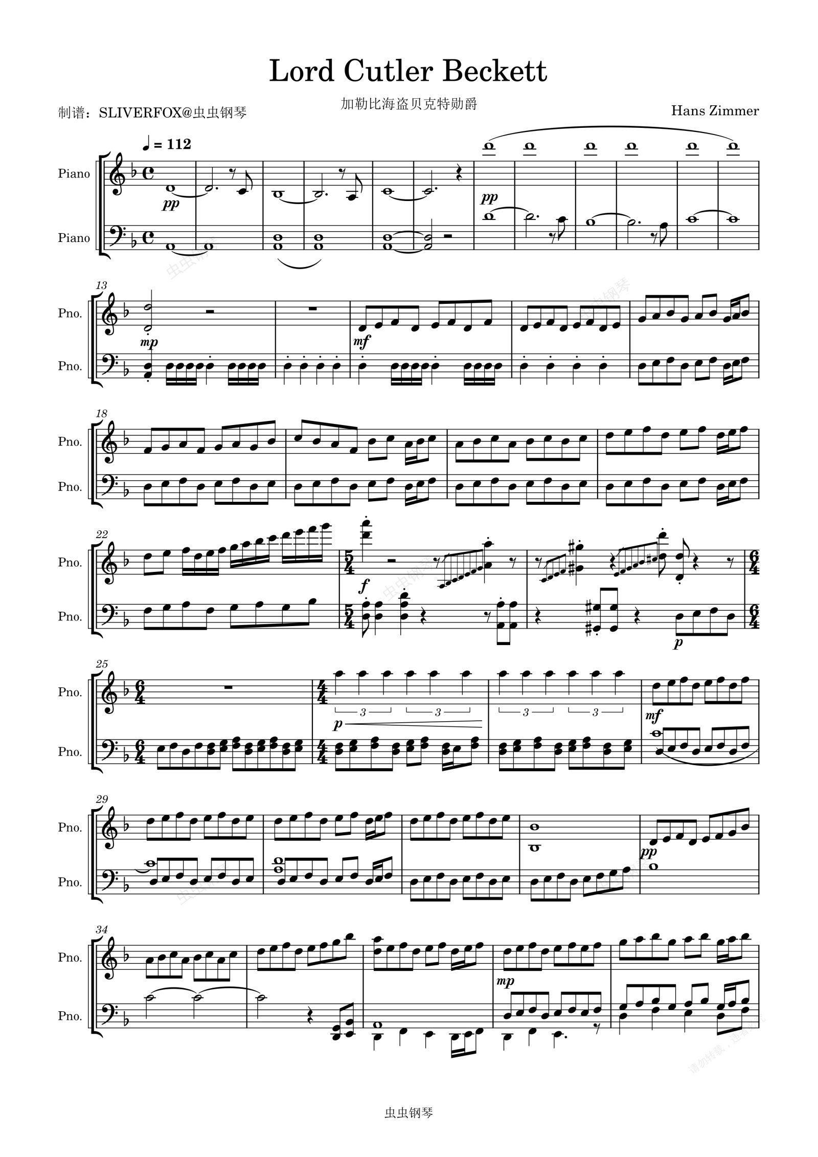 钢琴谱:《Lord Cutler Beckett》加勒比海盗贝克特勋爵出场曲