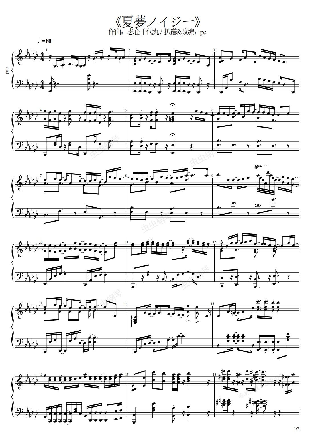 夏日重现OP2《夏夢ノイジー》钢琴版改编/夏梦noisy/志仓千代丸/亚咲花
