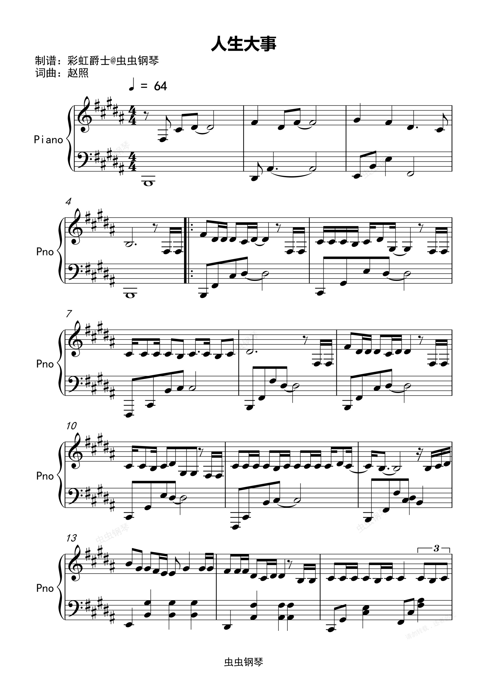 钢琴谱:人生大事-同名电影主题曲   钢琴  完整版 朱一龙