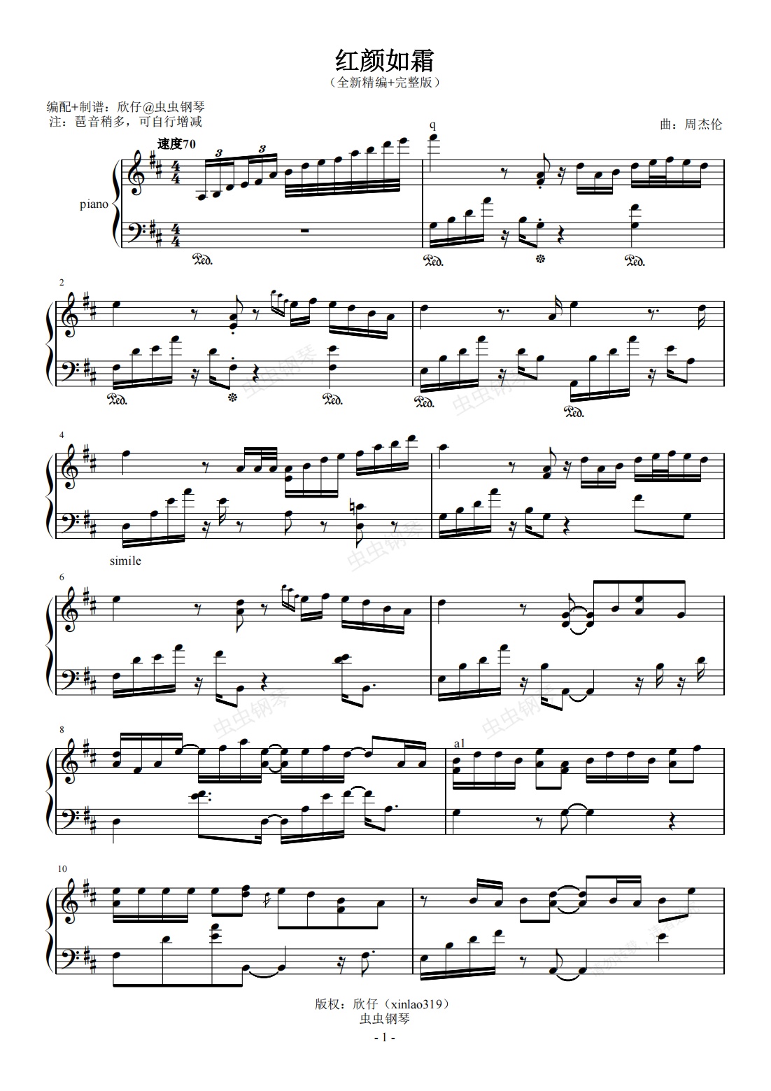 钢琴谱:周杰伦-D《红颜如霜》(全新精编+完整版)