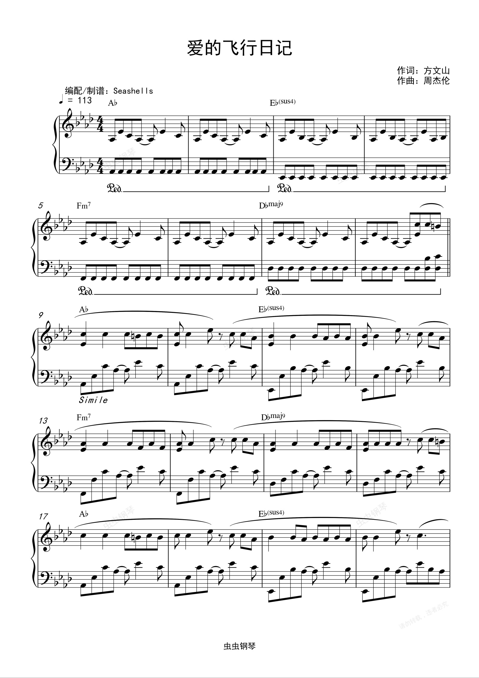 钢琴谱:周杰伦-《爱的飞行日记》精编钢琴独奏