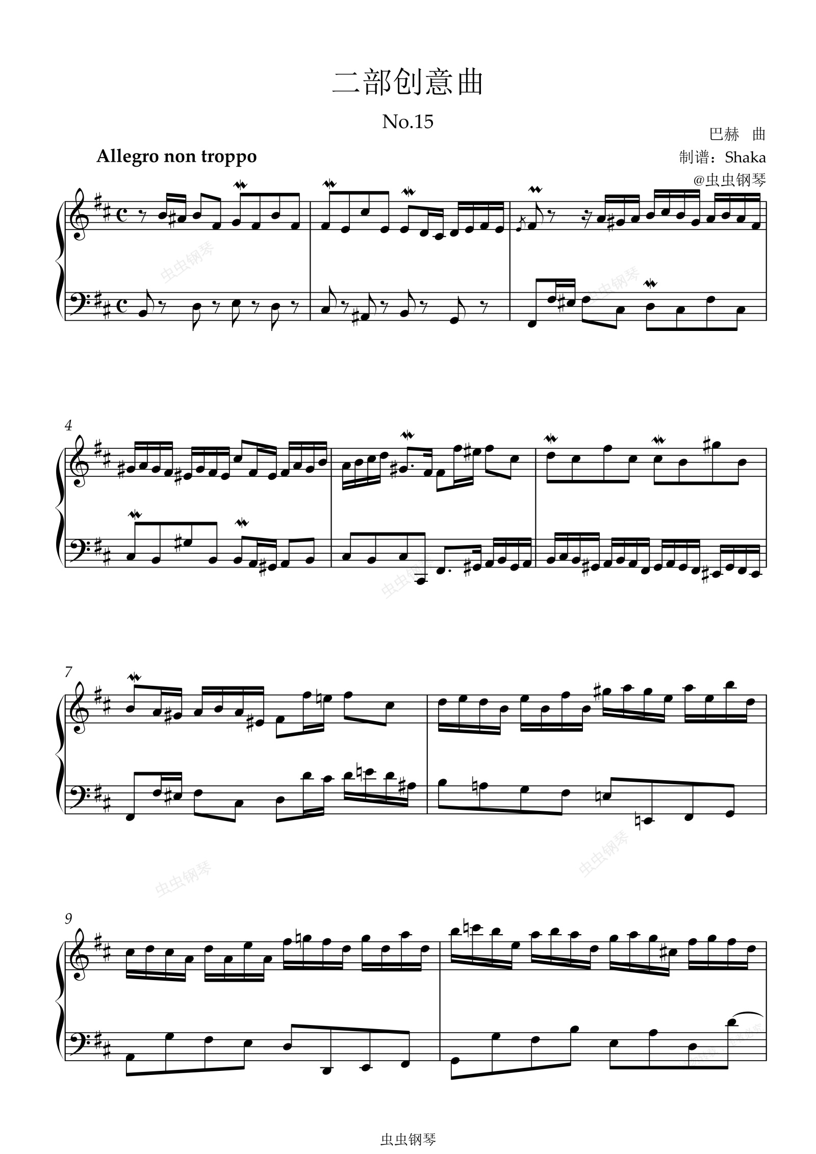 钢琴谱:巴赫 二部创意曲 No.15  ZYY 考级曲目