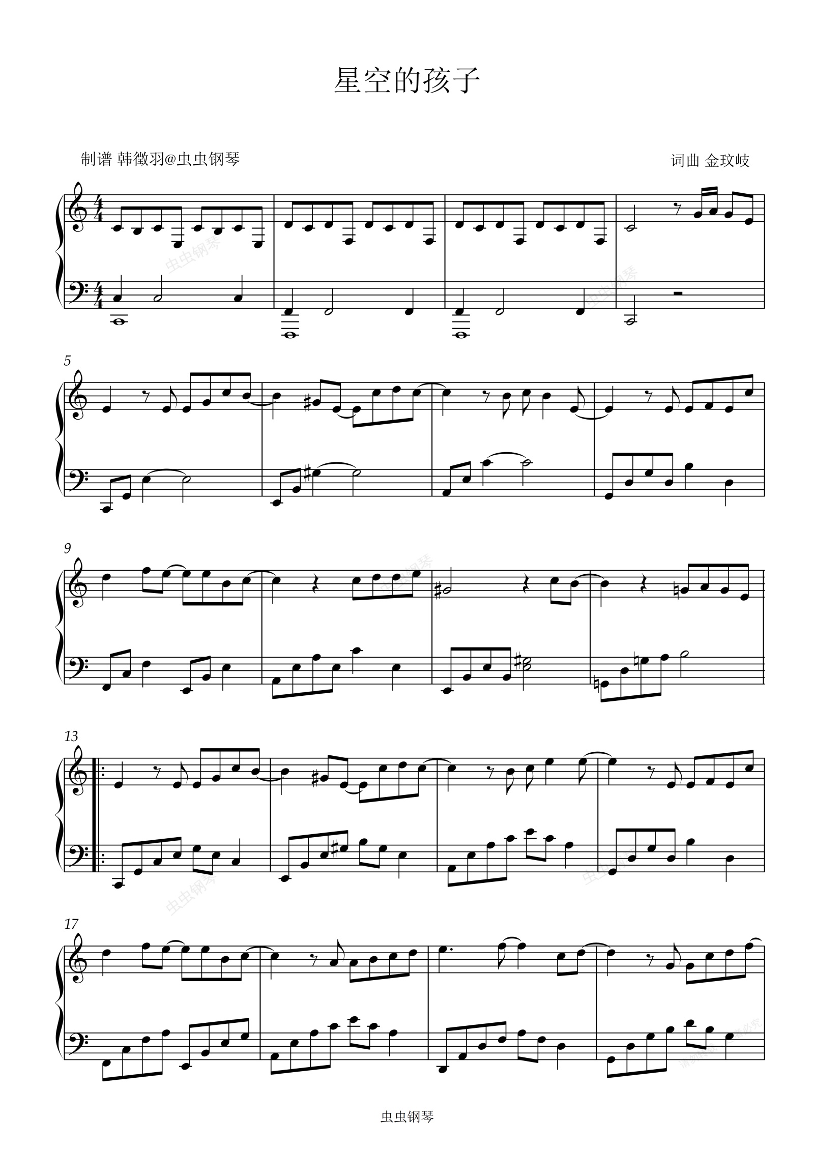 钢琴谱:星空的孩子 C调《外太空的莫扎特》
