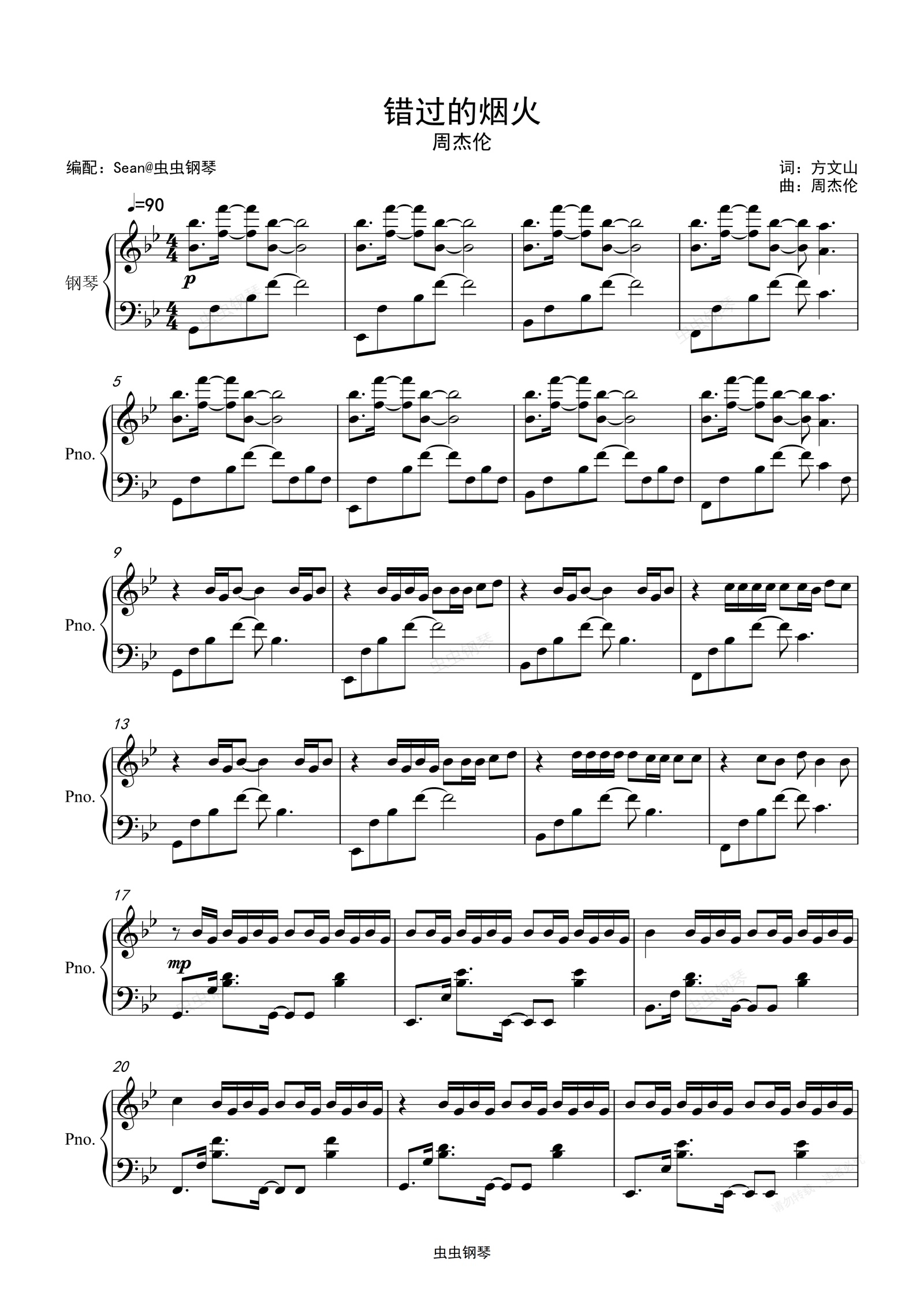 钢琴谱:周杰伦《错过的烟火》高度还原版-Sean编配