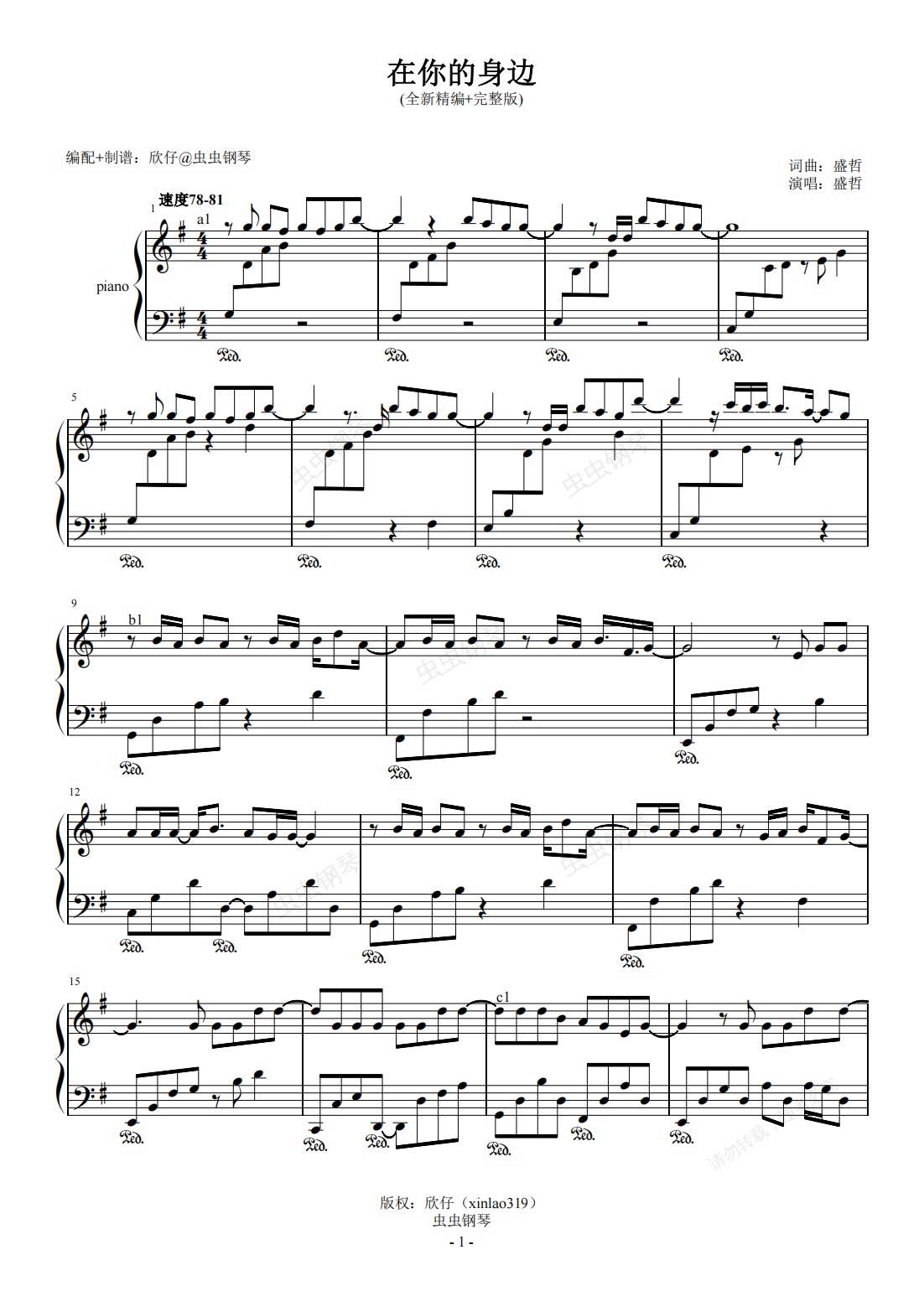 钢琴谱:盛哲-G《在你的身边》(全新精编+完整版)
