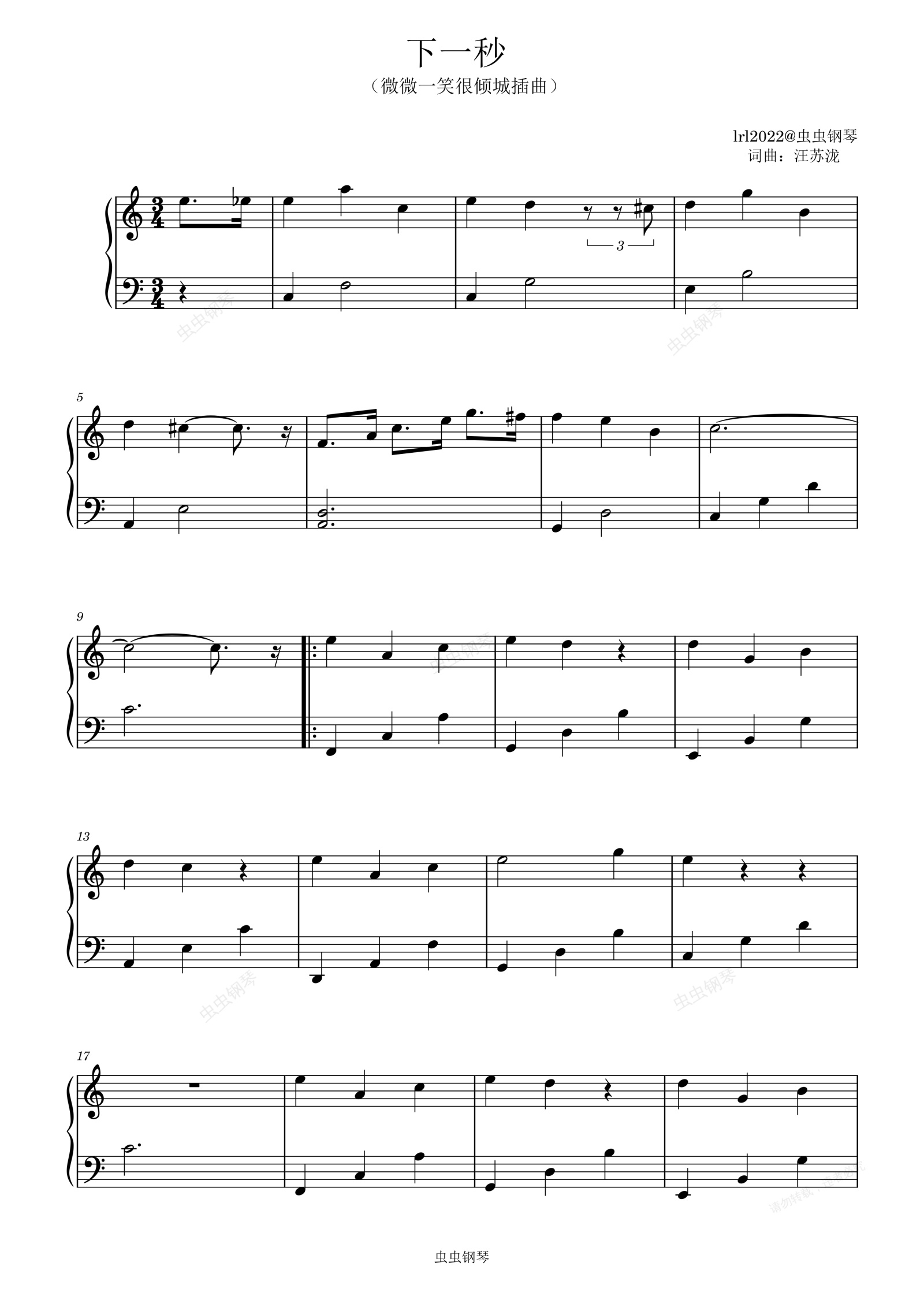 钢琴谱:下一秒-微微一笑很倾城插曲-钢琴谱-独奏版