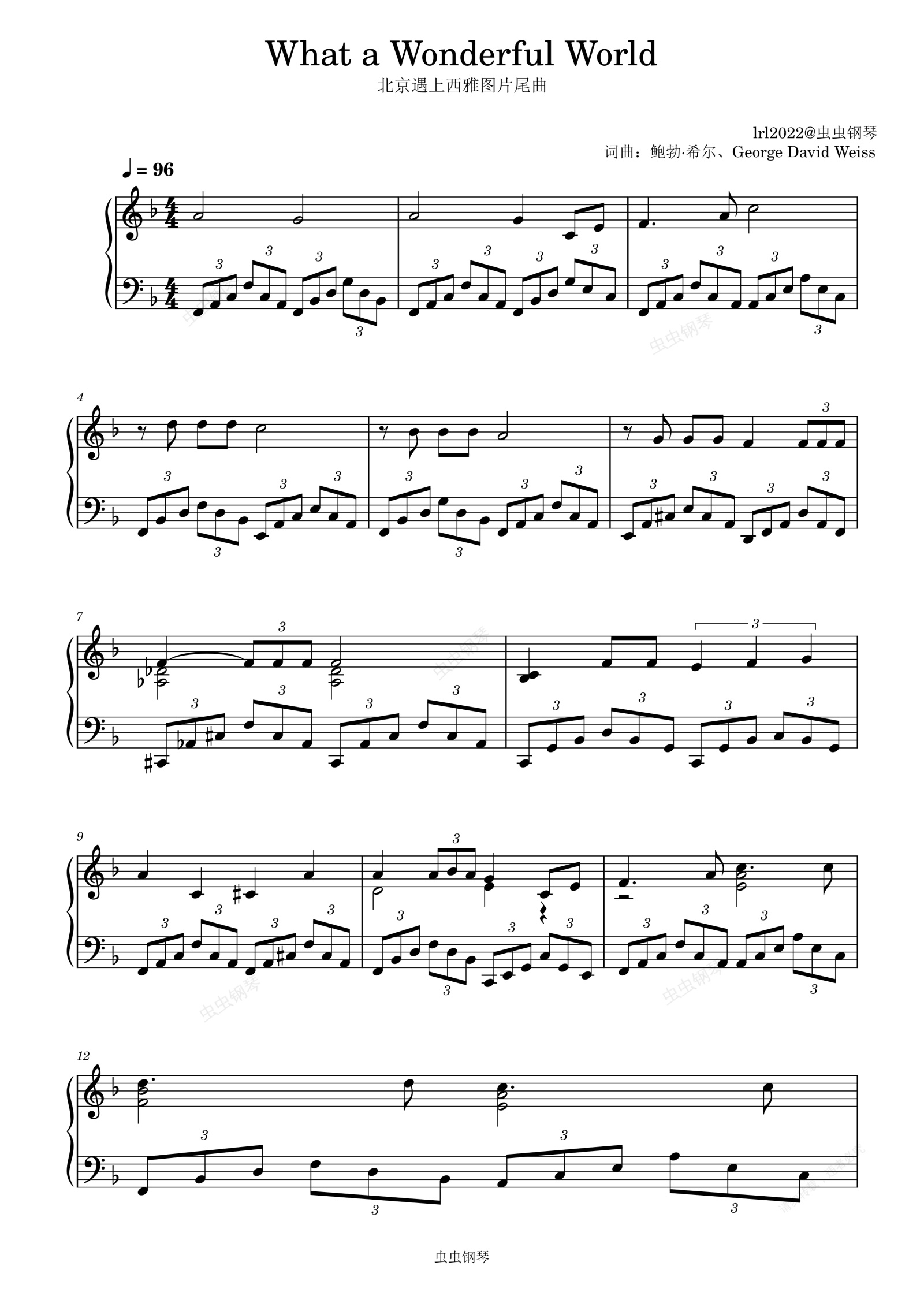 钢琴谱:What a Wonderful World-北京遇上西雅图片尾曲-钢琴谱-独奏版