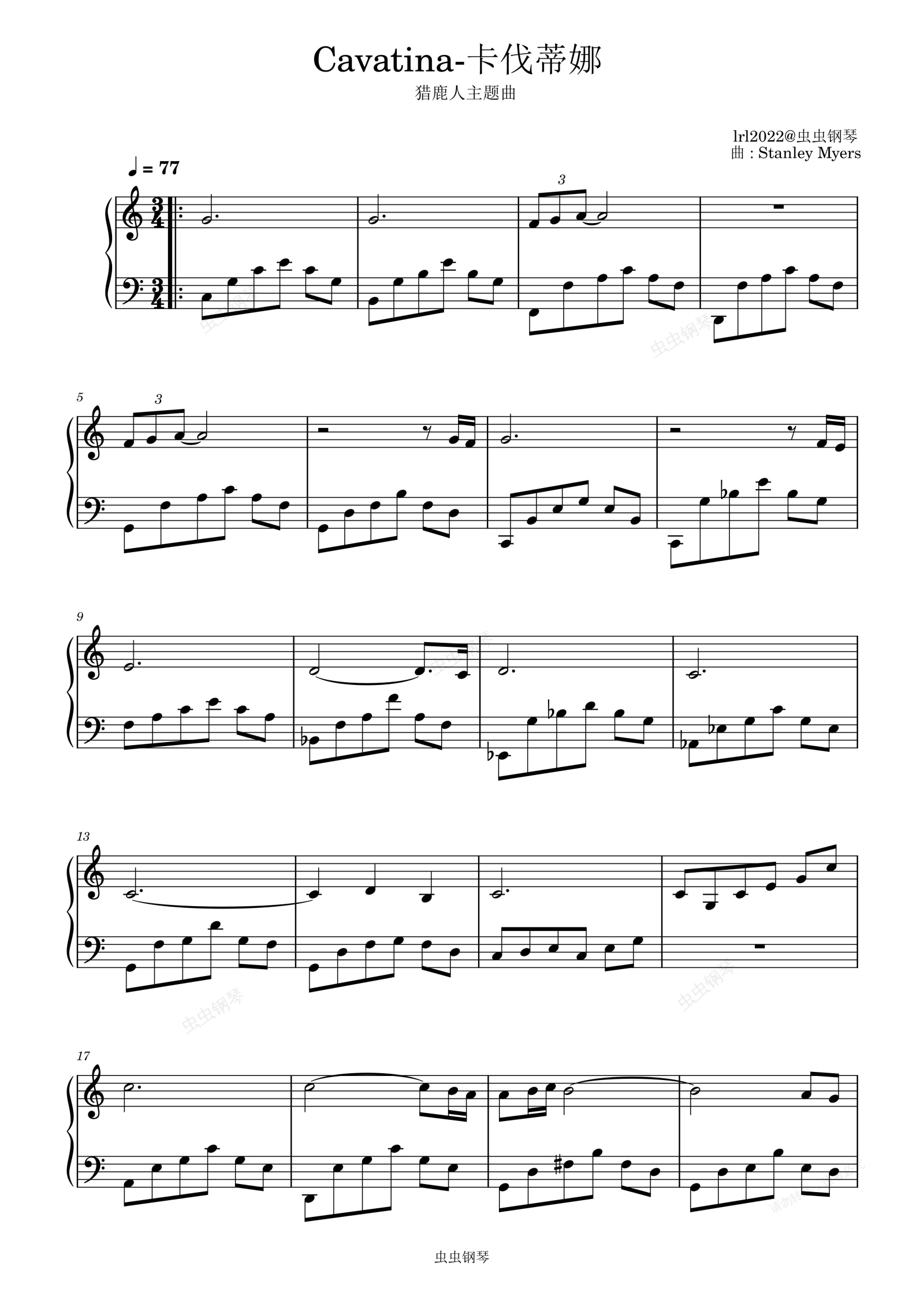 钢琴谱:Cavatina-卡伐蒂娜-猎鹿人主题曲-钢琴谱-独奏版