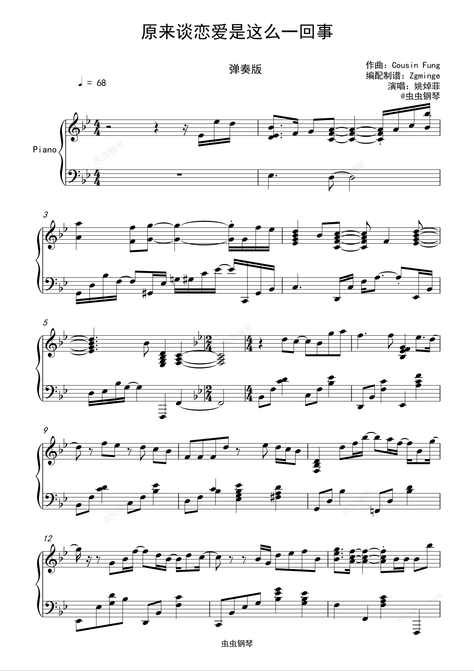 钢琴谱:原来谈恋爱是这么一回事 精编弹奏版