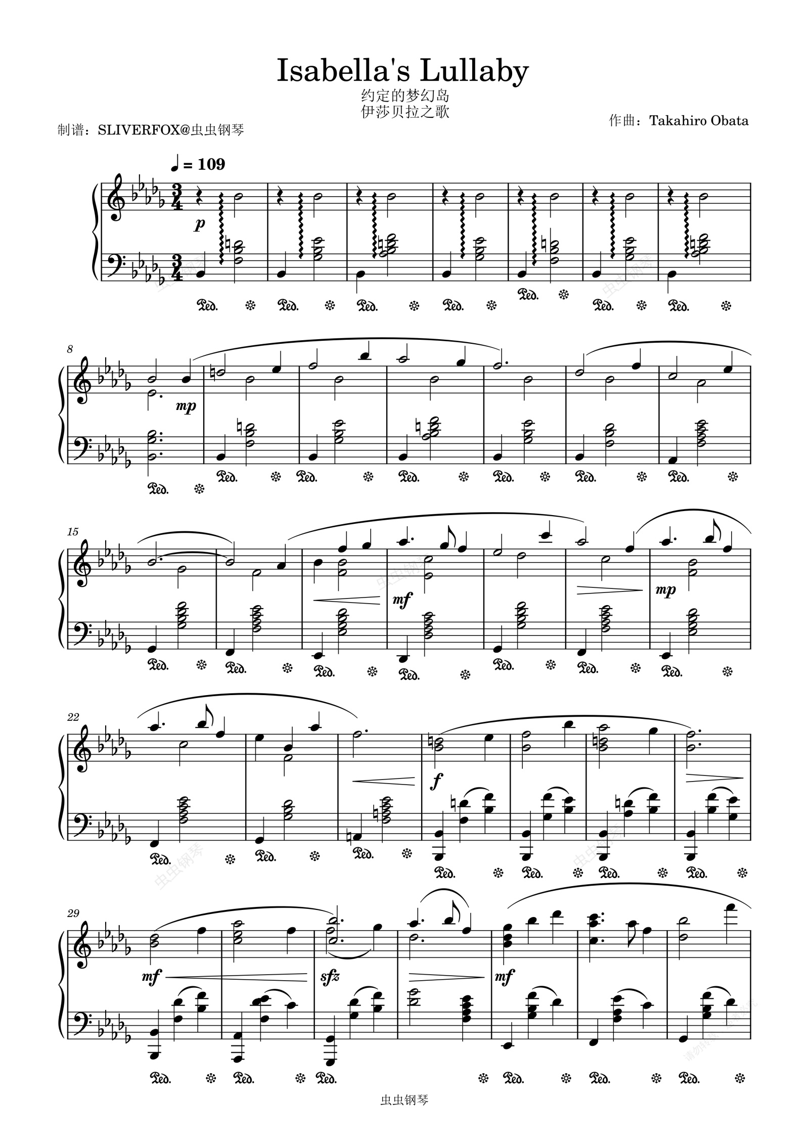 钢琴谱:《Isabella's Lullaby》约定的梦幻岛 伊莎贝拉之歌独奏版