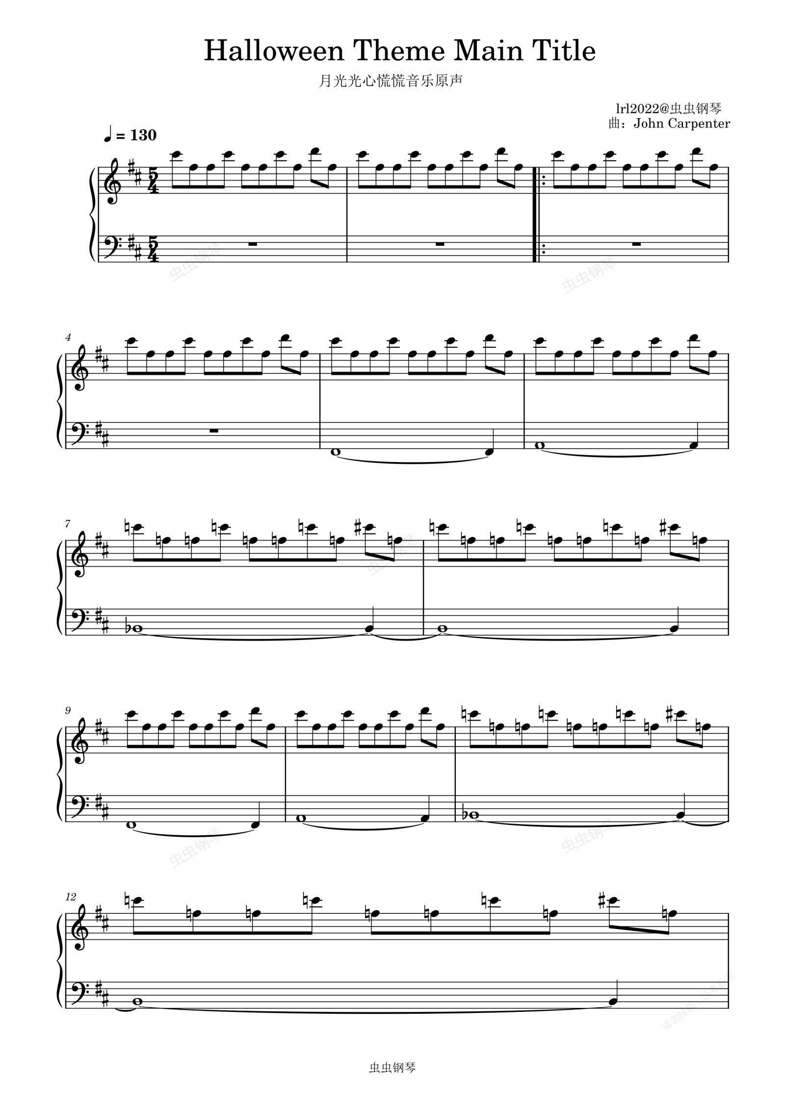 钢琴谱:Halloween Theme Main Title-月光光心慌慌音乐原声-钢琴谱-独奏版