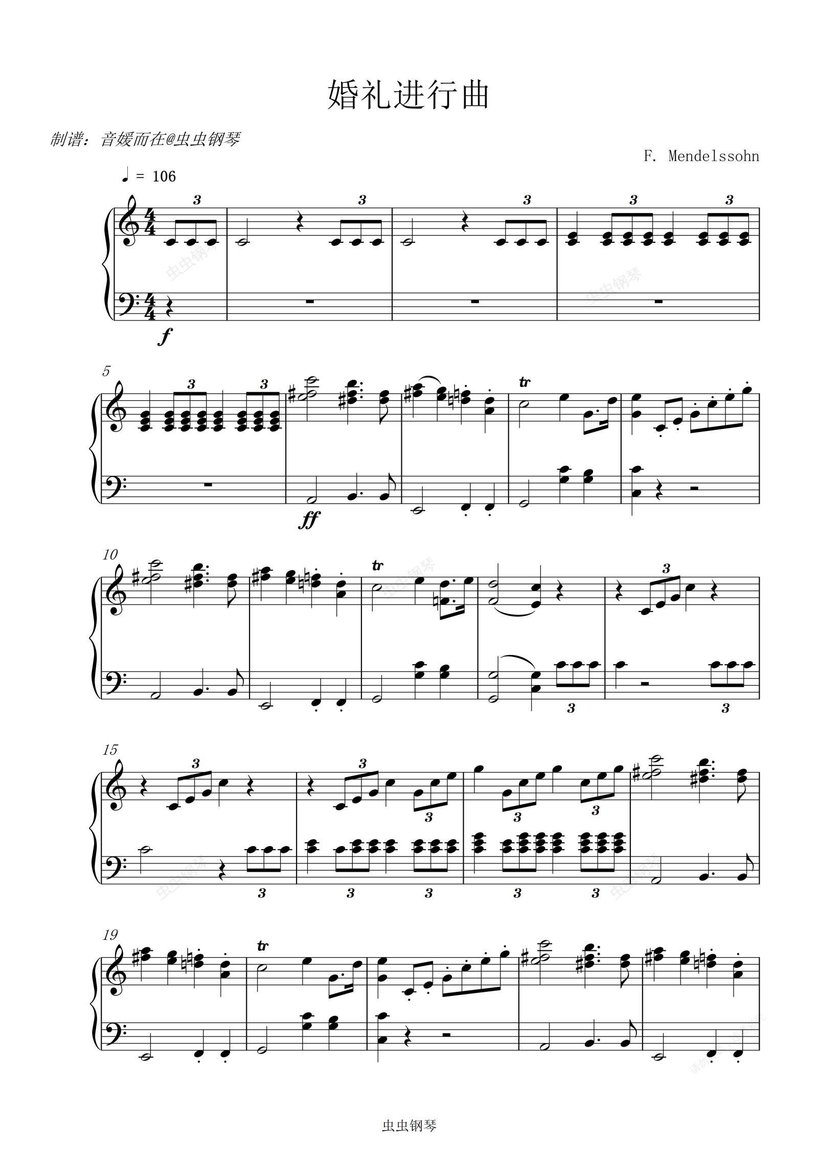 钢琴谱:《婚礼进行曲》 愿天下有情人终成眷属