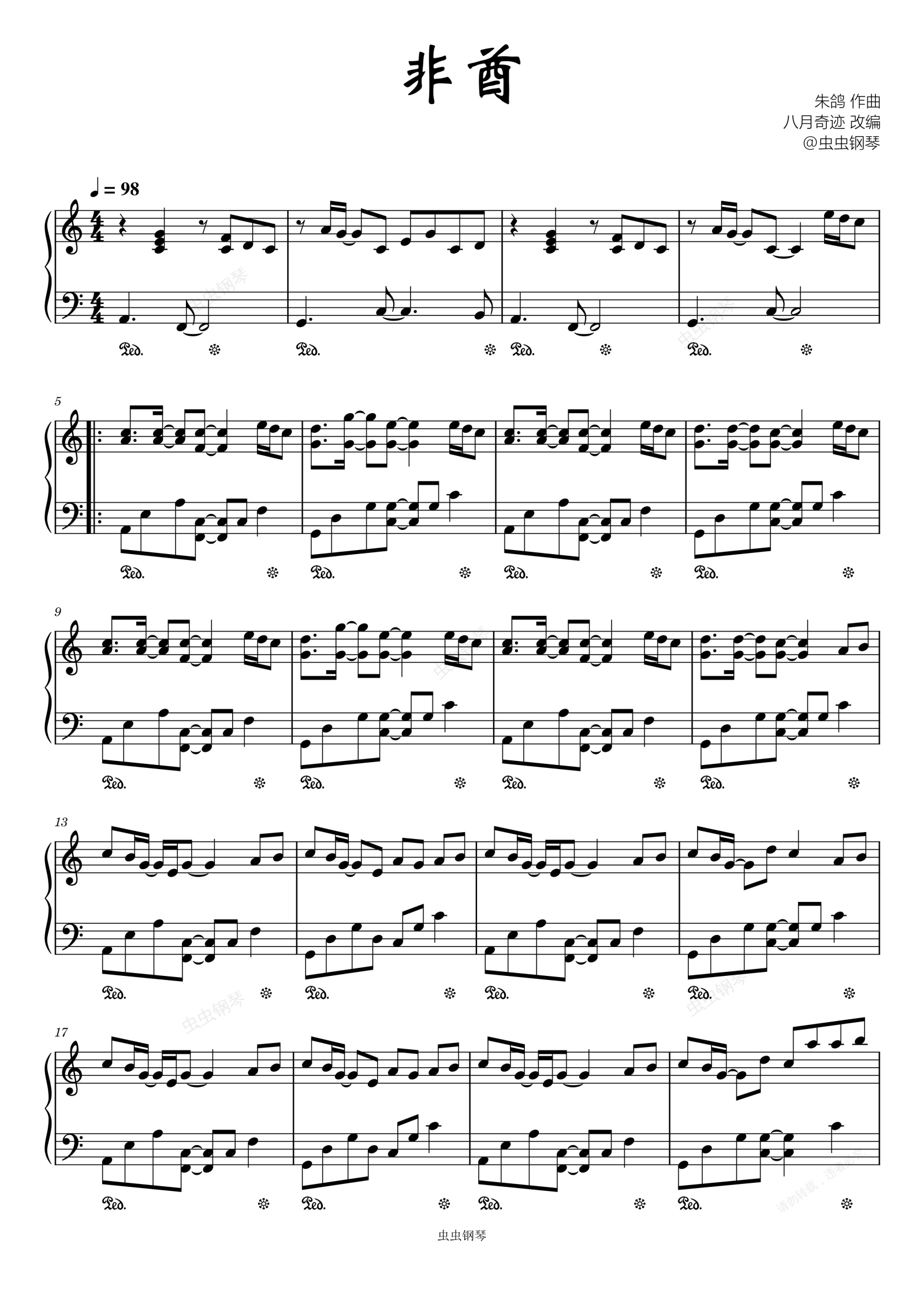 钢琴谱:《非酋》 简单易弹版