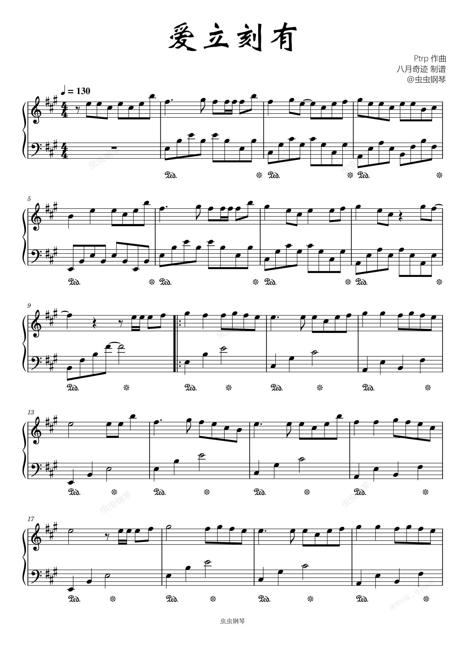 钢琴谱:爱立刻有(I like you)泰国小清新曲