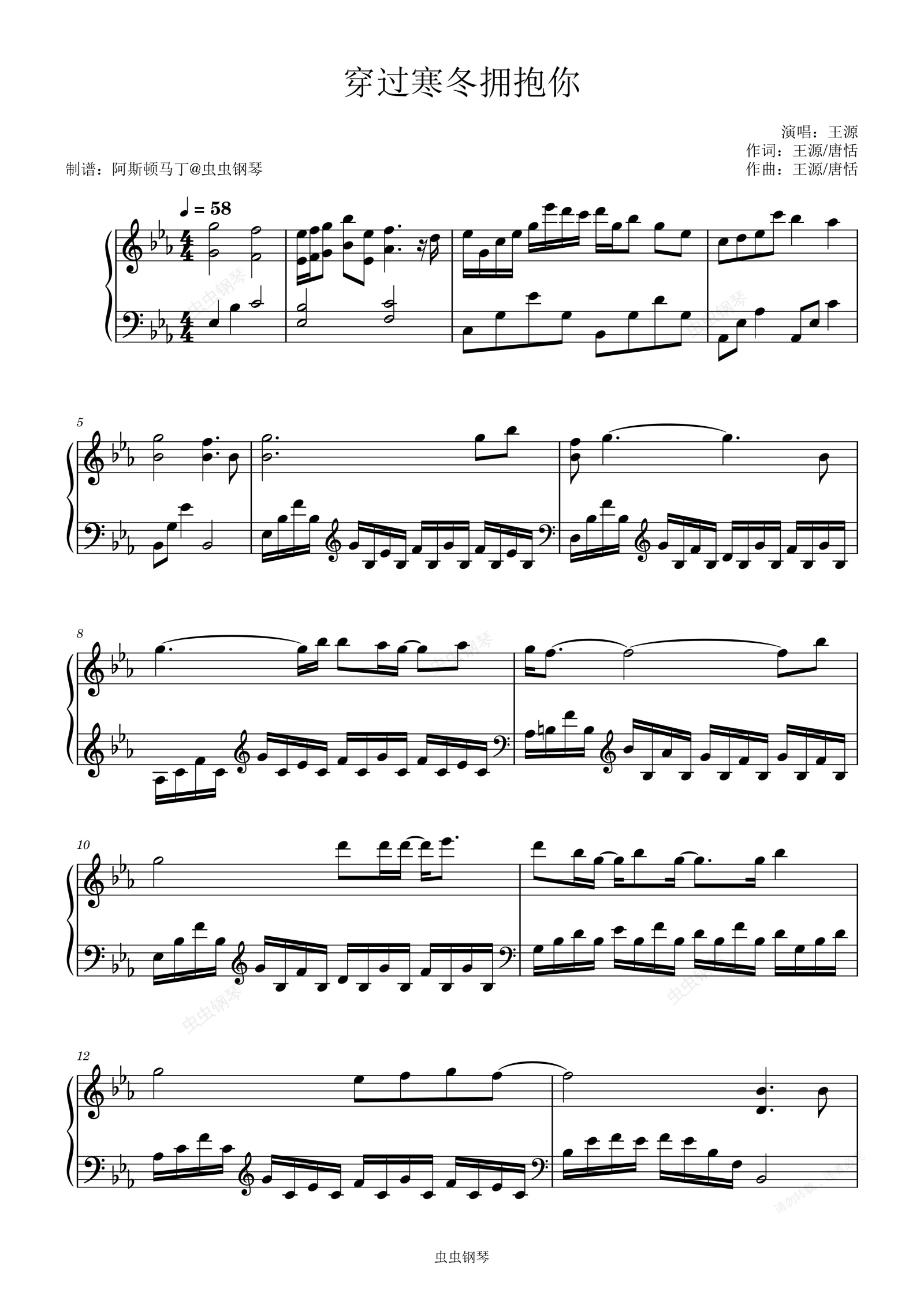 钢琴谱:穿过寒冬拥抱你 (《穿过寒冬拥抱你》电影主题曲) - 王源